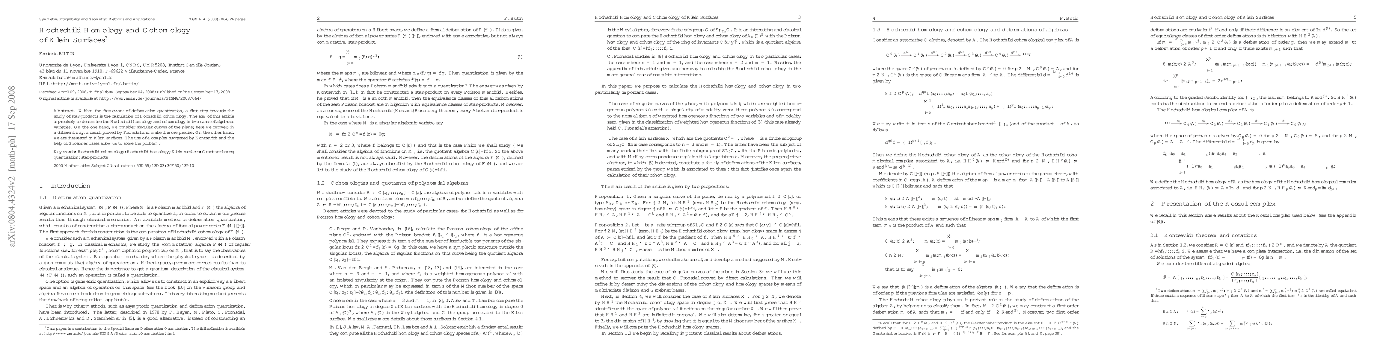 Within the framework of deformation quantization, a first step towards the study of star-products is the calculation of Hochschild cohomology. The aim of this article is precisely to determine the Hochschild homology and cohomology in two cases of algebraic varieties. On the one hand, we consider singular curves of the plane; here we recover, in a different way, a result proved by Fronsdal and make it more precise. On the other hand, we are interested in Klein surfaces. The use of a complex suggested by Kontsevich and the help of Groebner bases allow us to solve the problem.
