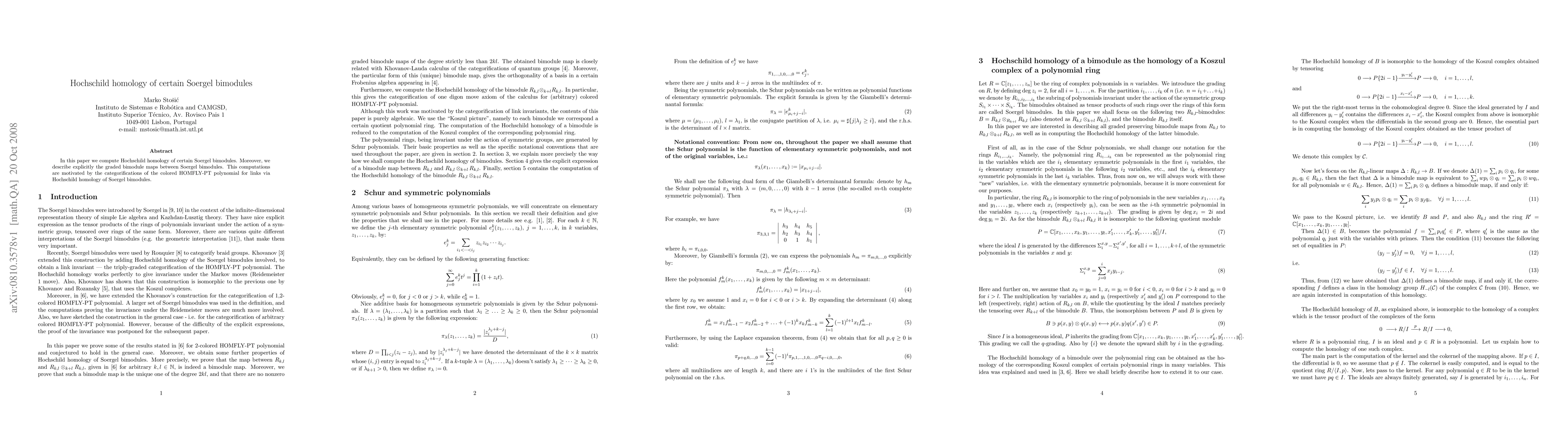 Summary: This paper computes the Hochschild homology of specific Soergel bimodules and explicitly describes the graded bimodule maps between them, driven by the aim to categorify the colored HOMFLY-PT polynomial for links.