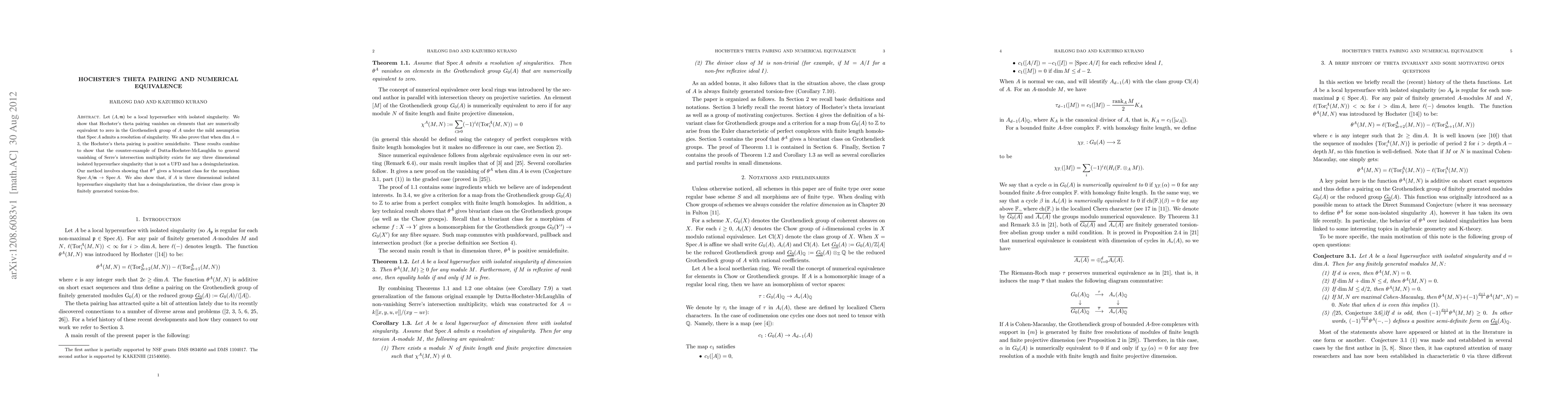 Researchers prove that Hochster's theta pairing is positive semidefinite for 3D isolated hypersurface singularities with desingularizations, combining to show a counterexample to the general vanishing of Serre's intersection multiplicity exists in such cases.