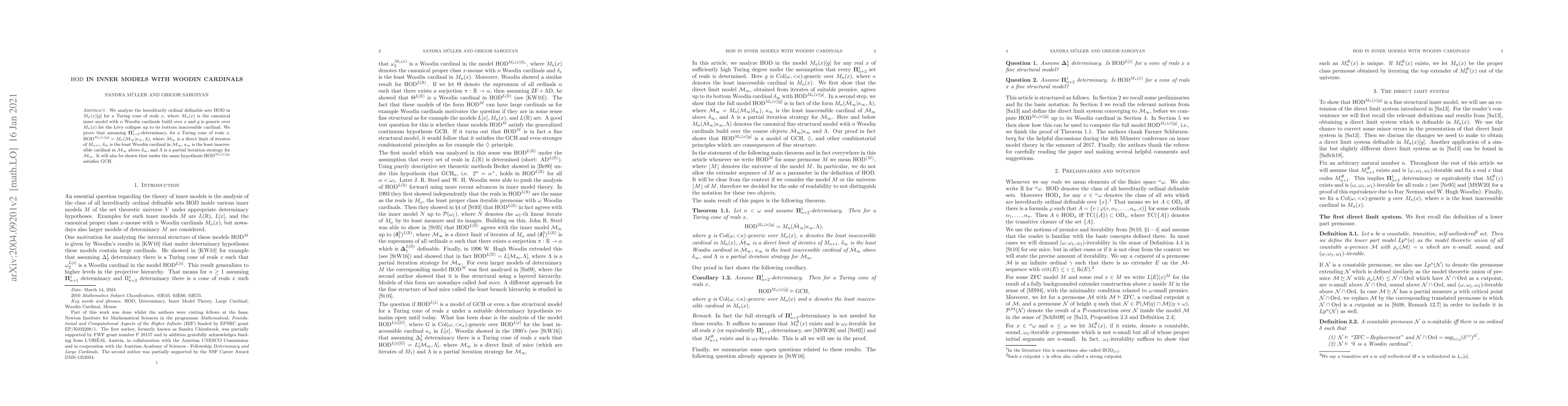 This paper investigates hereditarily ordinal definable sets $\operatorname{HOD}$ in inner models $M_n(x)[g]$ with $n$ Woodin cardinals built over a Turing cone of reals $x$. It proves that under $\boldsymbol\Pi^1_{n+2}$-determinacy, $\operatorname{HOD}^{M_n(x)[g]}$ equals a specific inner model and satisfies the Generalized Continuum Hypothesis (GCH).