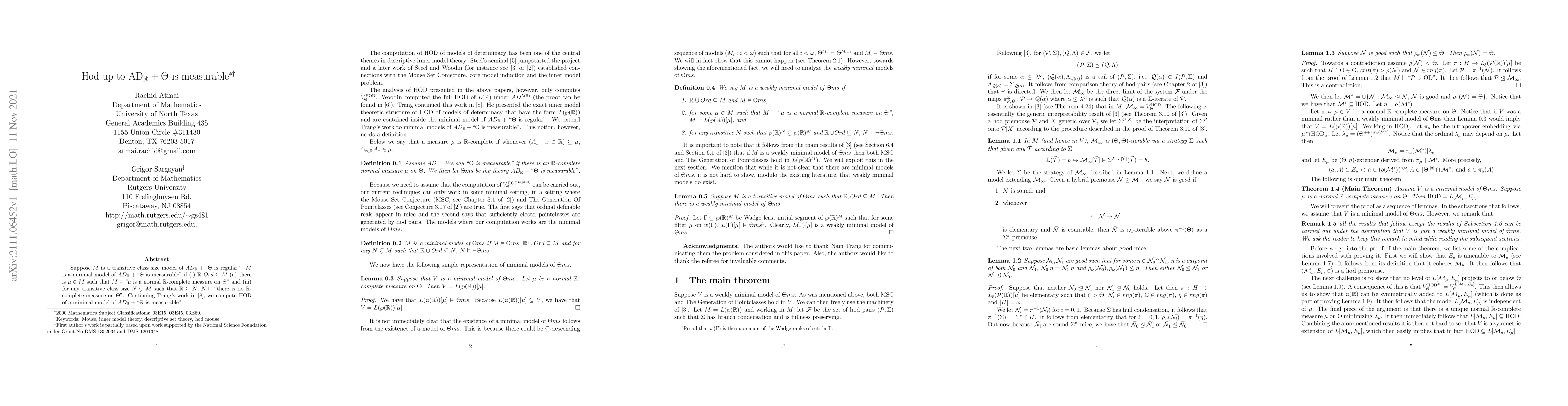 This paper explores the properties of a transitive class size model $M$ of $AD_{\mathbb{R}}+``\Theta$ is regular" and proves that $M$ is a minimal model under certain conditions, specifically when $\mathbb{R}$ and $Ord$ are contained in $M$, and $M$ contains a normal $\mathbb{R}$-complete measure on $\Theta$. It extends previous work to compute the HOD of such minimal models.