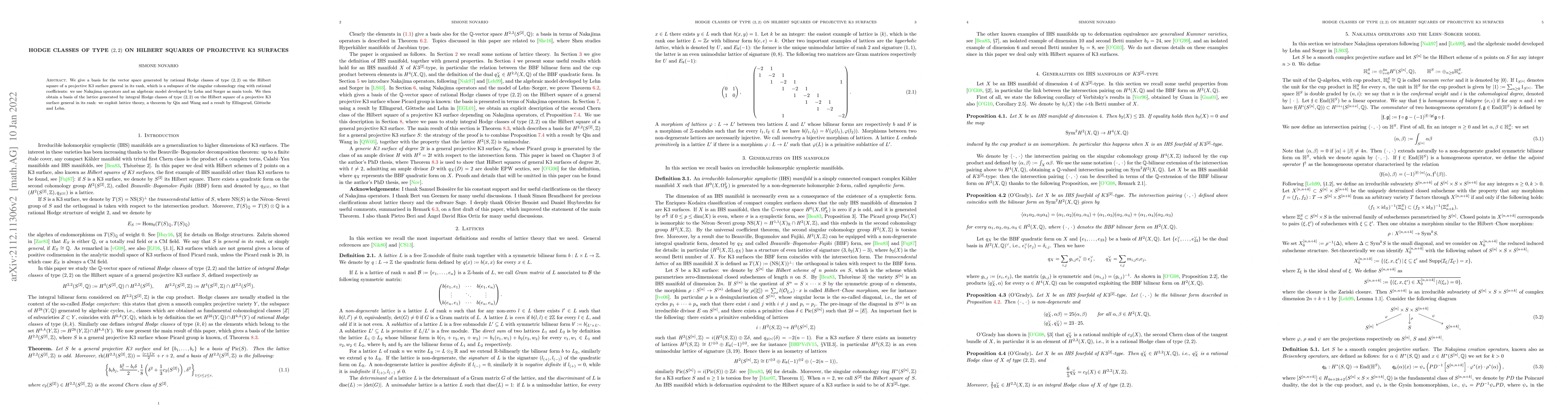 This research paper provides a basis for rational Hodge classes of type (2,2) on Hilbert squares of projective K3 surfaces and a lattice basis for integral Hodge classes, using tools like Nakajima operators and lattice theory.