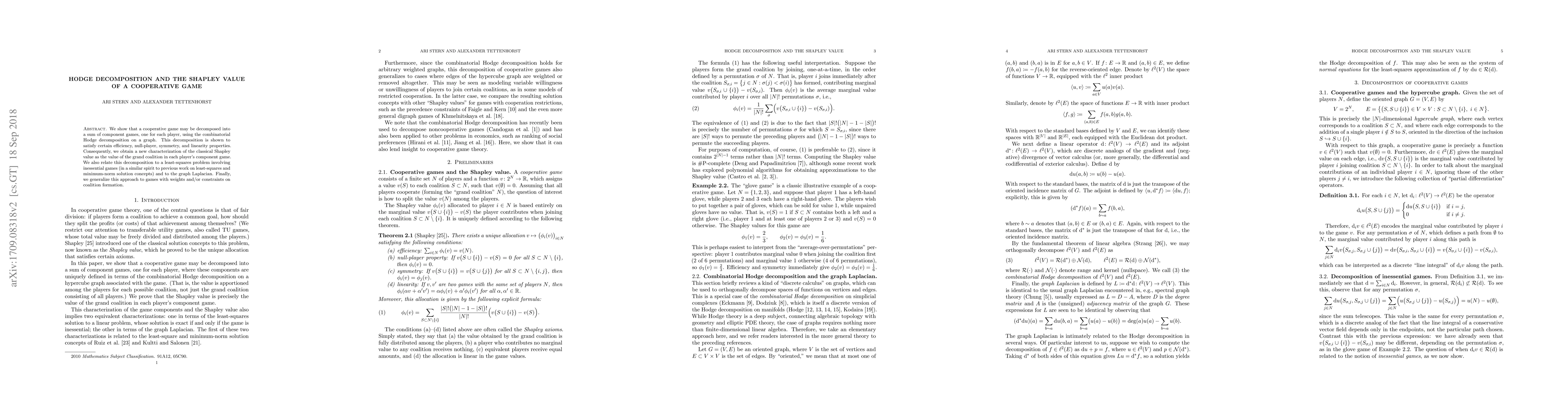 This paper decomposes cooperative games into player-specific component games using combinatorial Hodge decomposition, revealing new insights into the Shapley value and its properties. It connects this decomposition to least-squares problems and the graph Laplacian, and extends the approach to weighted and constrained games.