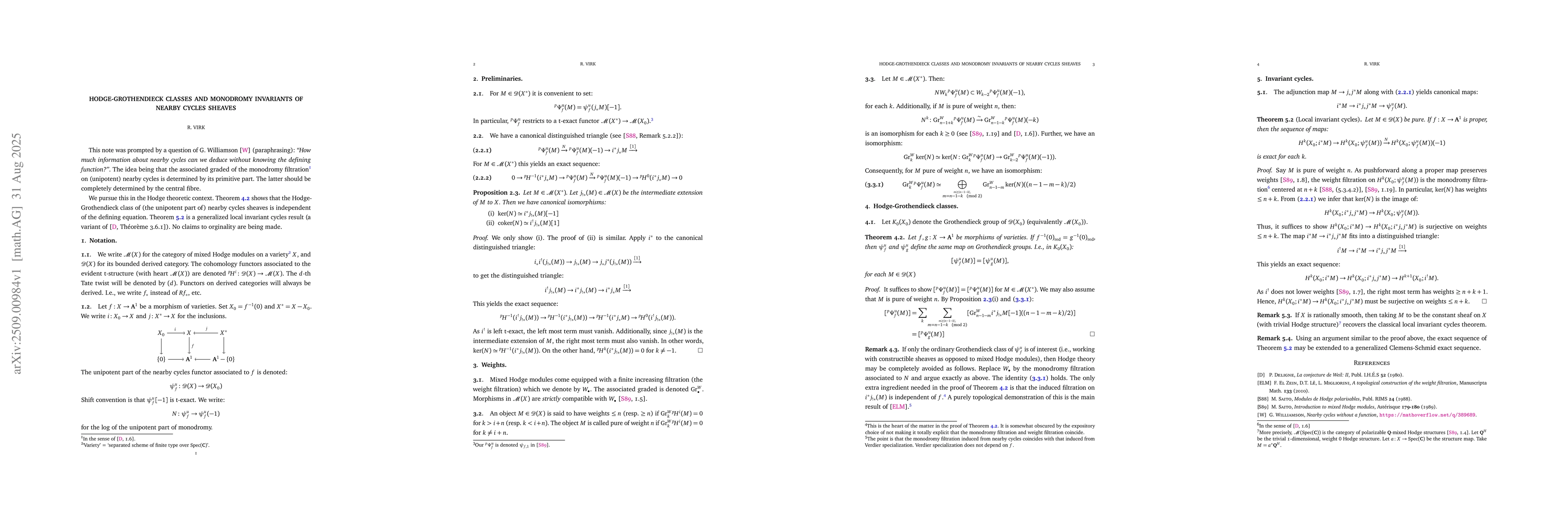 Remarks on the Hodge-Grothendieck class of the nearby cycles functor and a generalized local invariant cycles result.