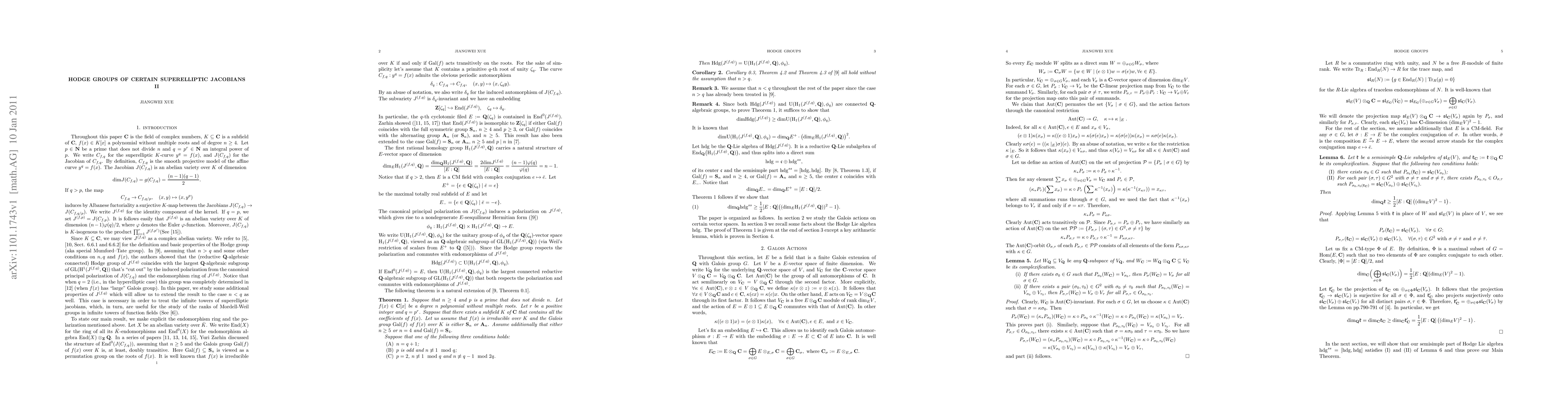 This paper determines the Hodge group of the simple factors of the Jacobian for superelliptic curves defined by y^q = f(x), where q is a power of a prime p, over a field K of characteristic zero. The focus is on the structure of these Jacobians in the context of algebraic geometry.