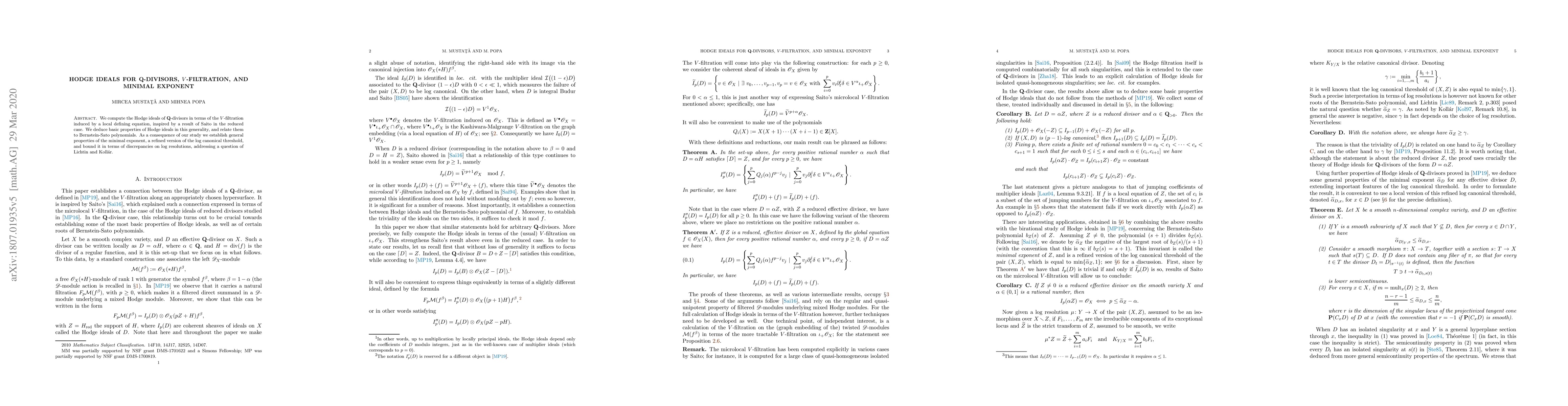 This paper computes Hodge ideals for Q-divisors using V-filtration and relates them to Bernstein-Sato polynomials, establishing properties of the minimal exponent and bounding it in terms of discrepancies on log resolutions.