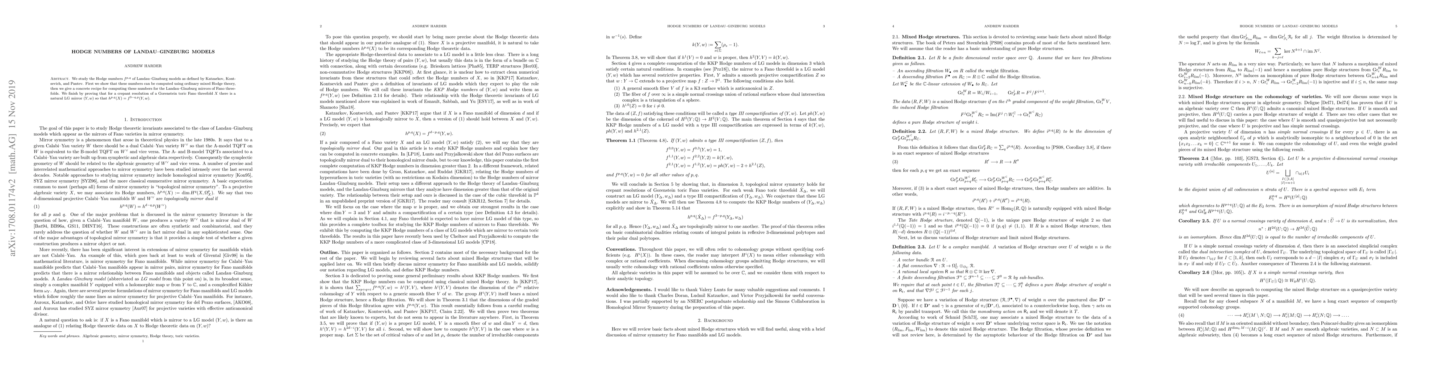 This paper investigates the Hodge numbers of Landau-Ginzburg models using mixed Hodge theory and provides a method to compute these numbers for mirrors of Fano threefolds. It concludes by establishing a relationship between the Hodge numbers of a crepant resolution of a Gorenstein toric Fano threefold and those of its Landau-Ginzburg mirror.