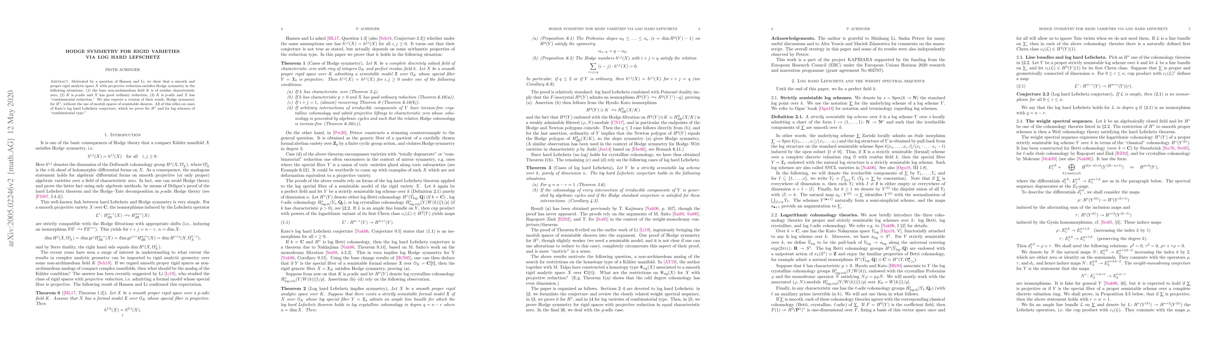 This paper demonstrates Hodge symmetry for smooth and proper rigid analytic spaces under specific conditions, using log schemes and Kato's log hard Lefschetz conjecture. It also reproves Hodge symmetry for $H^1$ without relying on moduli spaces of semistable sheaves.