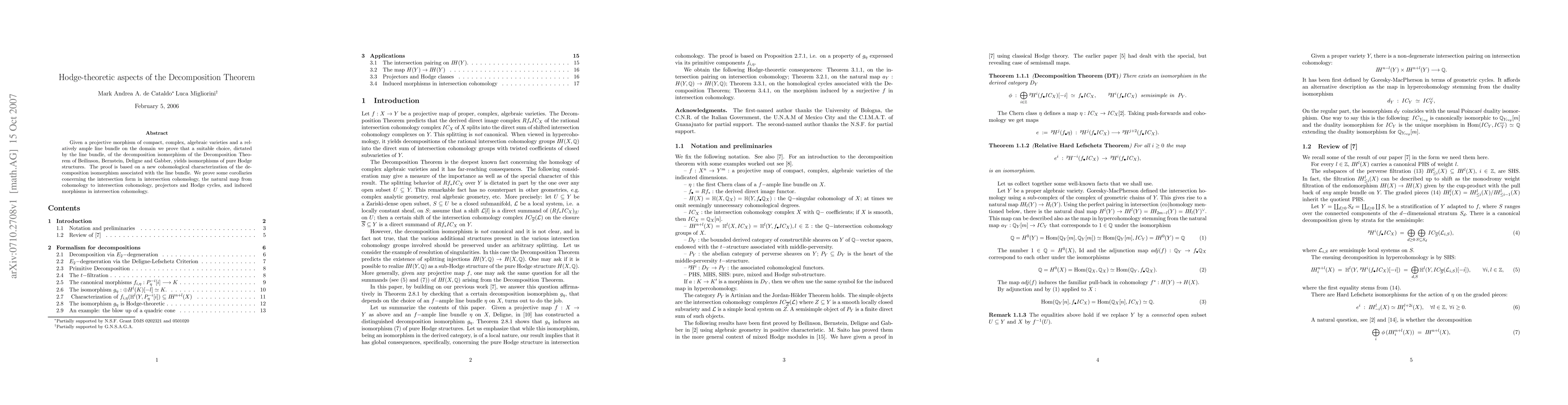 The paper establishes that a selected decomposition isomorphism from the Decomposition Theorem aligns with pure Hodge structures for projective morphisms of complex algebraic varieties and relatively ample line bundles. It provides new cohomological insights into this isomorphism and explores related implications for intersection cohomology and Hodge cycles.