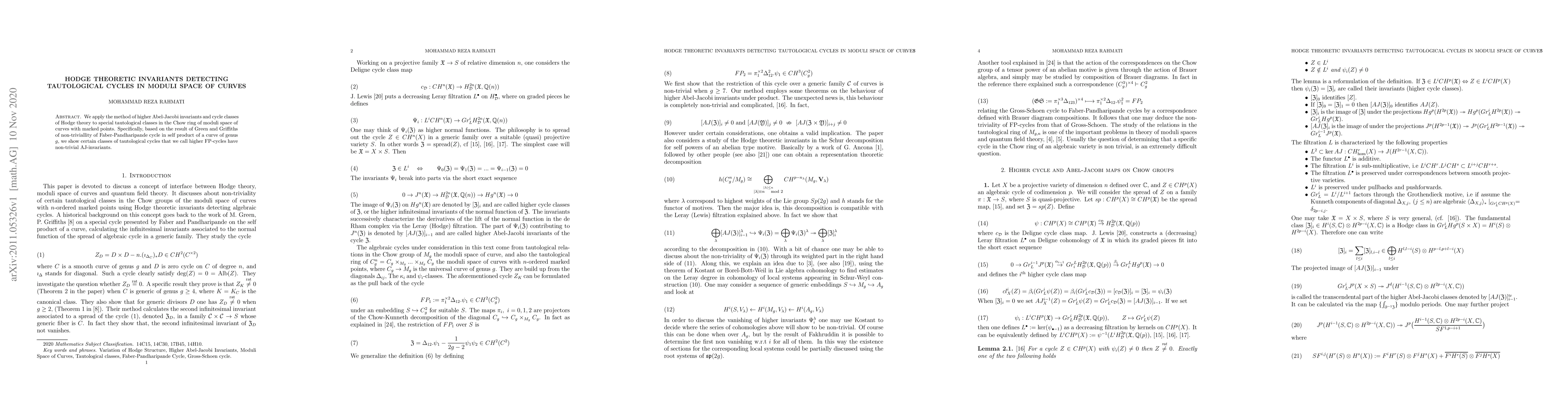 This paper utilizes higher Abel-Jacobi invariants and Hodge theory to investigate special tautological cycles in the moduli space of curves with marked points. It demonstrates that certain higher FP-cycles, building on the non-triviality of the Faber-Pandharipande cycle, possess non-trivial Abel-Jacobi invariants.