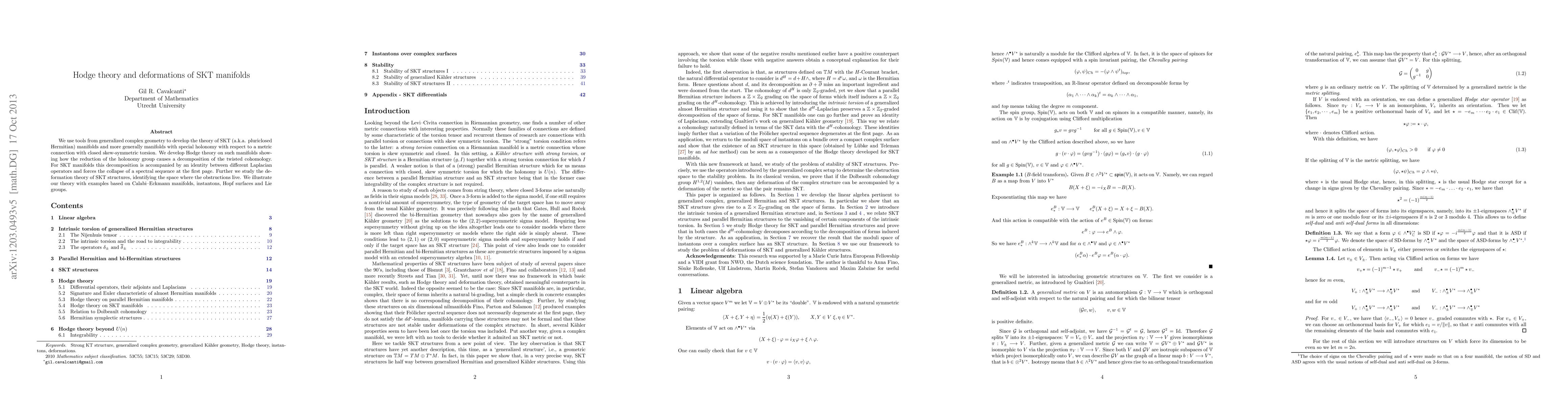 This paper develops Hodge theory and deformations of SKT manifolds using generalized complex geometry. It reveals how holonomy group reduction impacts the decomposition of twisted cohomology, and explores the deformation theory of SKT structures, supported by examples from Calabi-Eckmann manifolds, instantons, Hopf surfaces, and Lie groups.