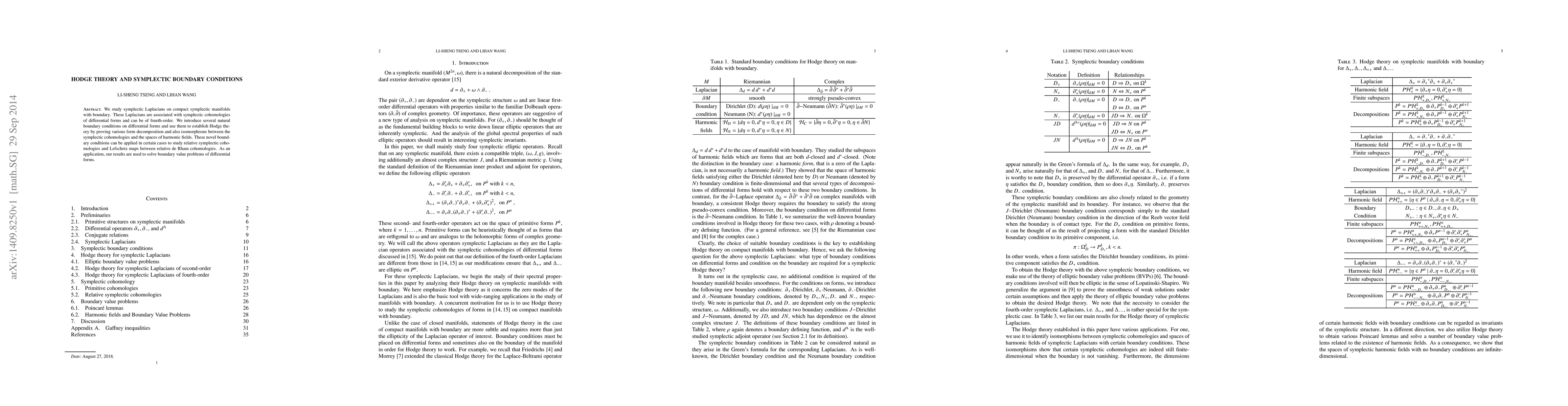 This paper explores symplectic Laplacians on compact symplectic manifolds with boundary, establishing Hodge theory through novel boundary conditions and proving isomorphisms between symplectic cohomologies and harmonic fields, with applications to solving boundary value problems of differential forms.