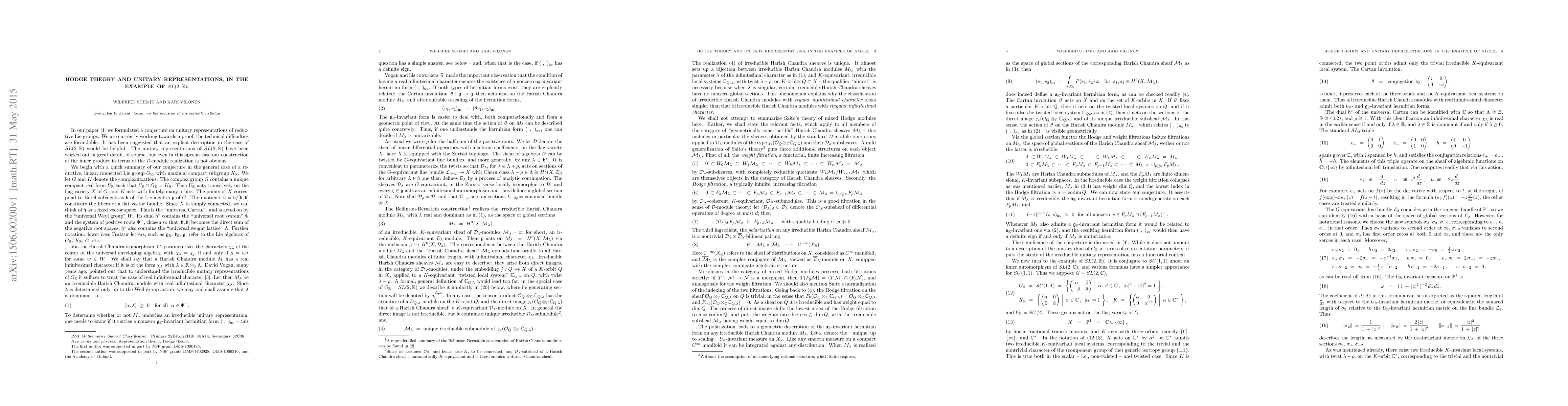 This paper proposes a conjecture regarding the irreducible unitary representations of reductive Lie groups, specifically focusing on the example of $\mathrm{SL}(2,\mathbb{R})$. The study ties Hodge theory into the analysis of these representations.