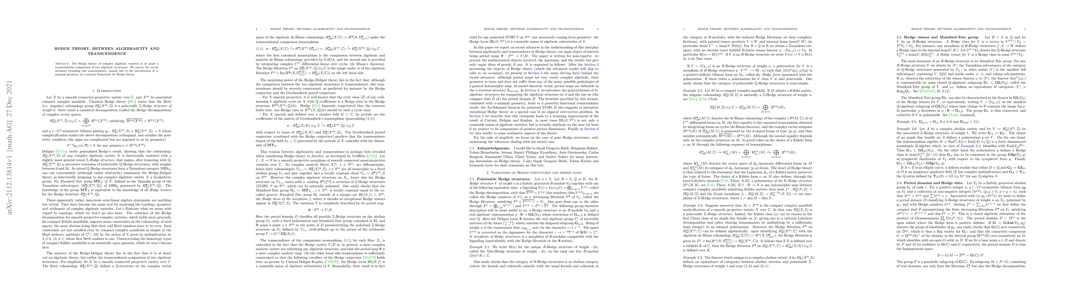 Summary: This paper explores the intersection of algebraicity and transcendence in Hodge theory of complex algebraic varieties, highlighting recent progress made through the application of o-minimal geometry to better understand these transcendental comparisons.