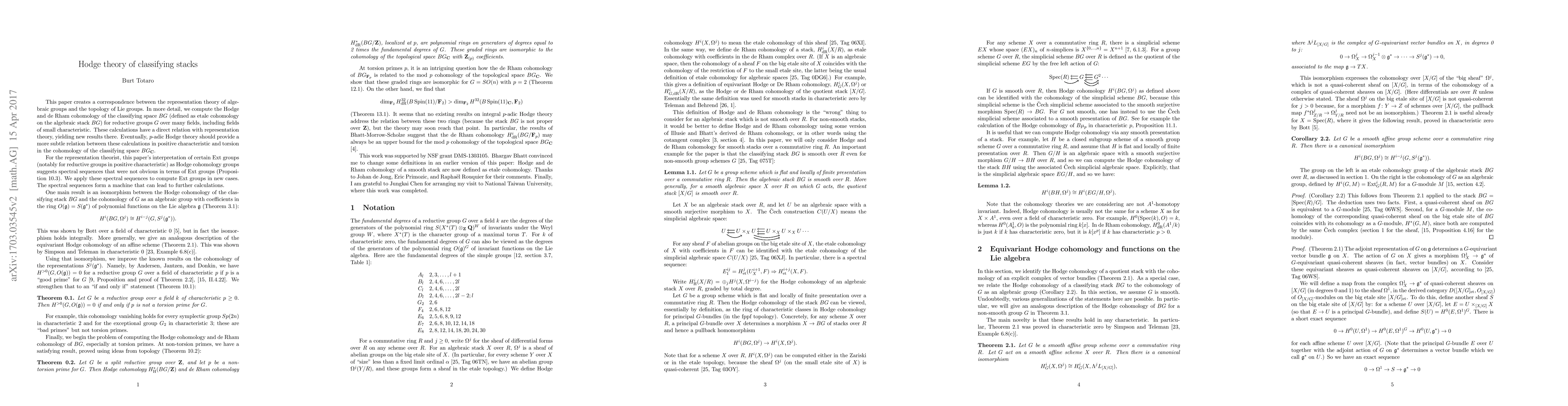 This paper computes the Hodge and de Rham cohomology of the classifying space BG for reductive groups G over various fields, revealing new insights into representation theory and drawing parallels to topological classifying space cohomology. The results extend beyond typical topological analogies, providing unique contributions to both algebraic geometry and representation theory.