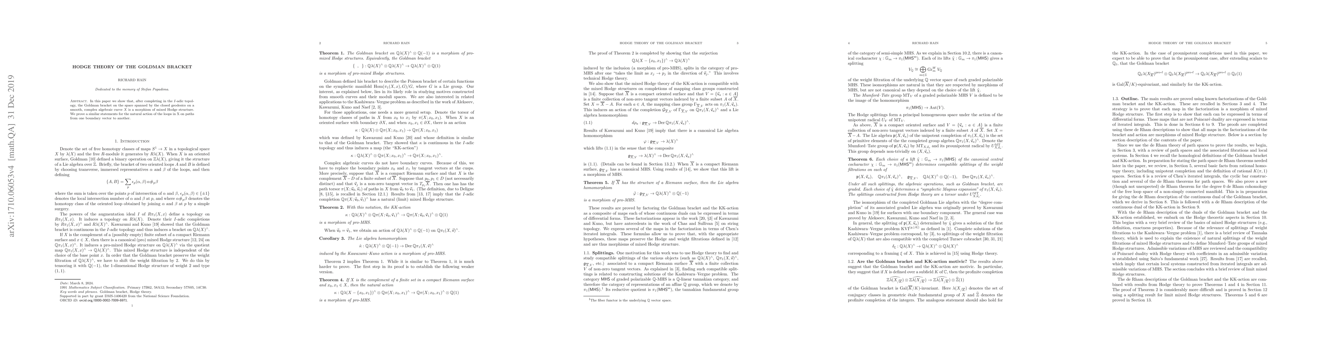 The paper employs Hodge theory to analyze the Goldman bracket on homotopy classes of loops on a smooth, complex algebraic curve, showing that after completion in the I-adic topology, it becomes a morphism of mixed Hodge structure. It also extends these results to the natural action of loops on paths from one 'boundary component' to another.