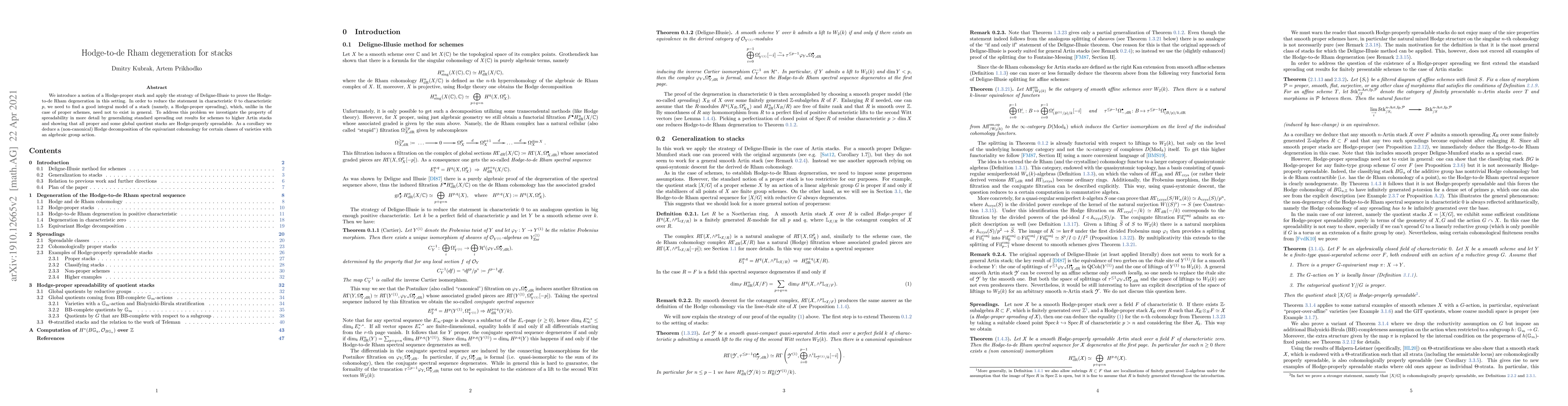 This paper introduces Hodge-proper stacks and extends Deligne-Illusie's method to prove the Hodge-to-de Rham degeneration for these stacks, demonstrating that proper and some global quotient stacks are spreadable. It deduces a Hodge decomposition for the equivariant cohomology of certain varieties with an algebraic group action.