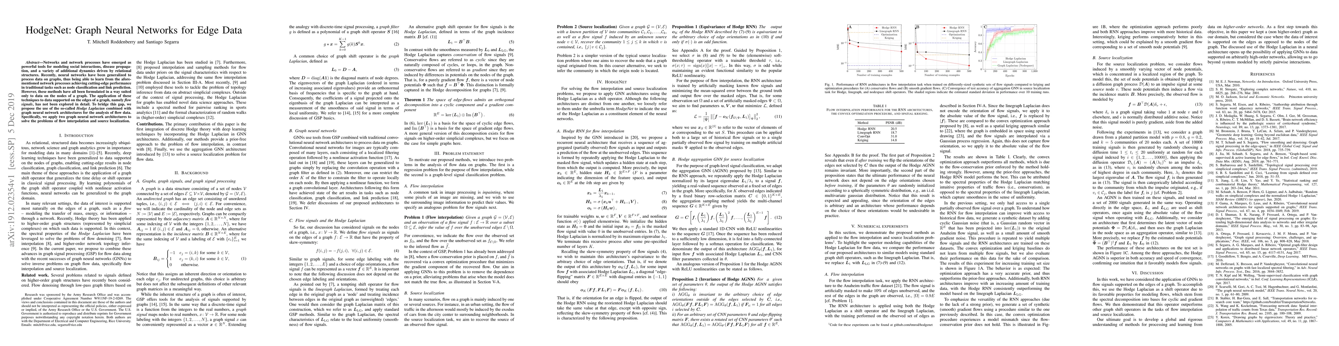 Networks and network processes have emerged as powerful tools for modeling social interactions, disease propagation, and a variety of additional dynamics driven by relational structures. Recently, neural networks have been generalized to process data on graphs, thus being able to learn from the aforementioned network processes achieving cutting-edge performance in traditional tasks such as node classification and link prediction. However, these methods have all been formulated in a way suited only to data on the nodes of a graph. The application of these techniques to data supported on the edges of a graph, namely flow signals, has not been explored in detail. To bridge this gap, we propose the use of the so-called Hodge Laplacian combined with graph neural network architectures for the analysis of flow data. Specifically, we apply two graph neural network architectures to solve the problems of flow interpolation and source localization.