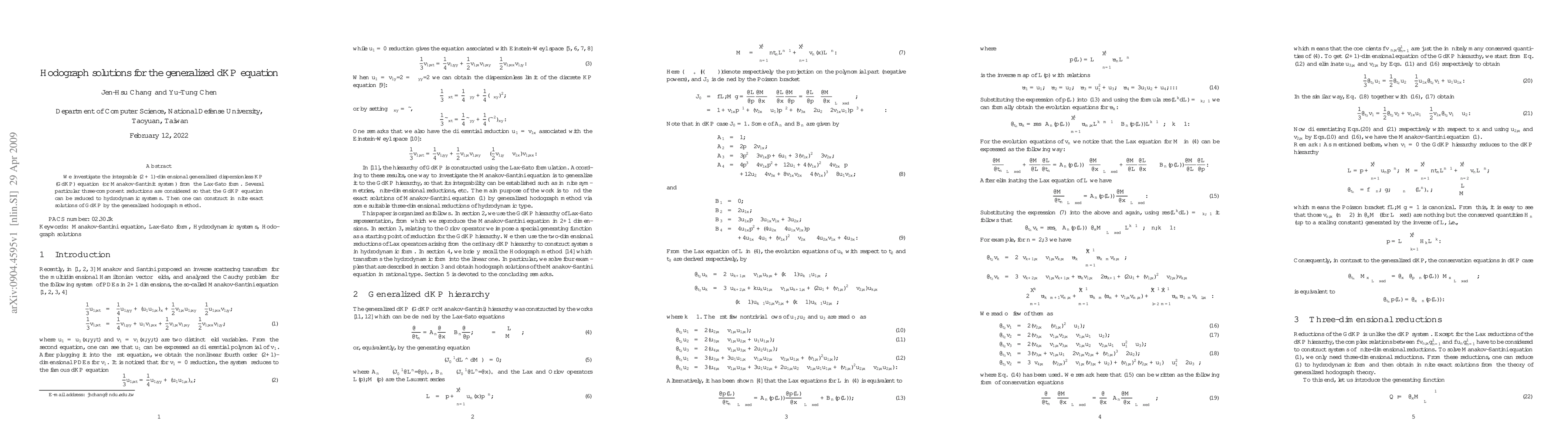 Researchers developed a method to create exact solutions for the generalized dKP equation using the hodograph technique, enabling new insights into integrable systems.