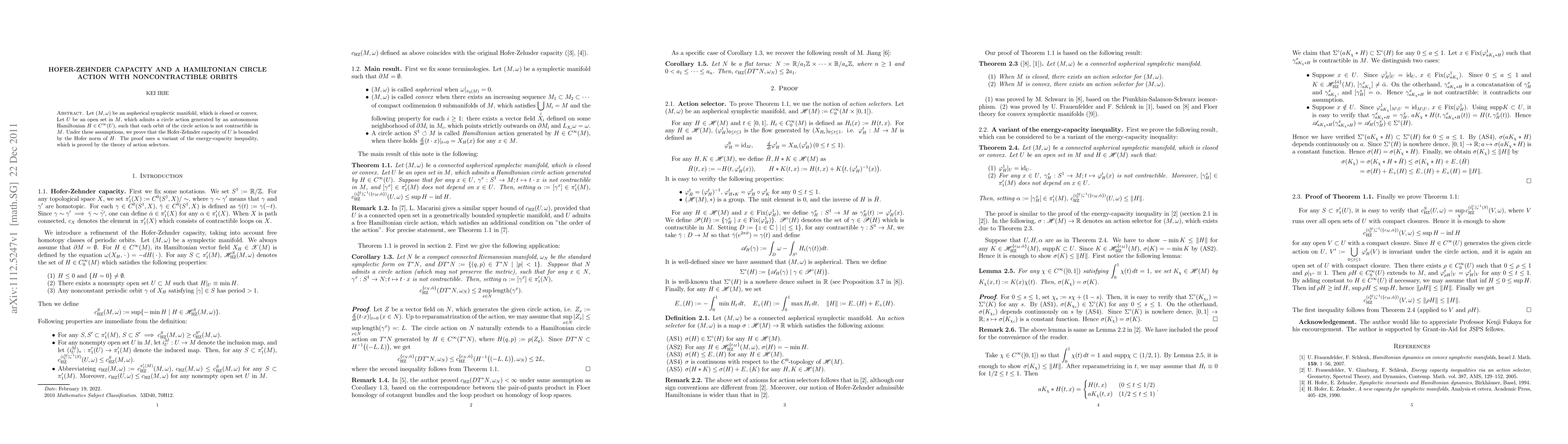 Summary: The paper proves that in an aspherical symplectic manifold with a Hamiltonian circle action where each orbit is noncontractible, the Hofer-Zehnder capacity of an open set is bounded by the Hofer norm of the Hamiltonian function, utilizing a variant of the energy-capacity inequality and the theory of action selectors.