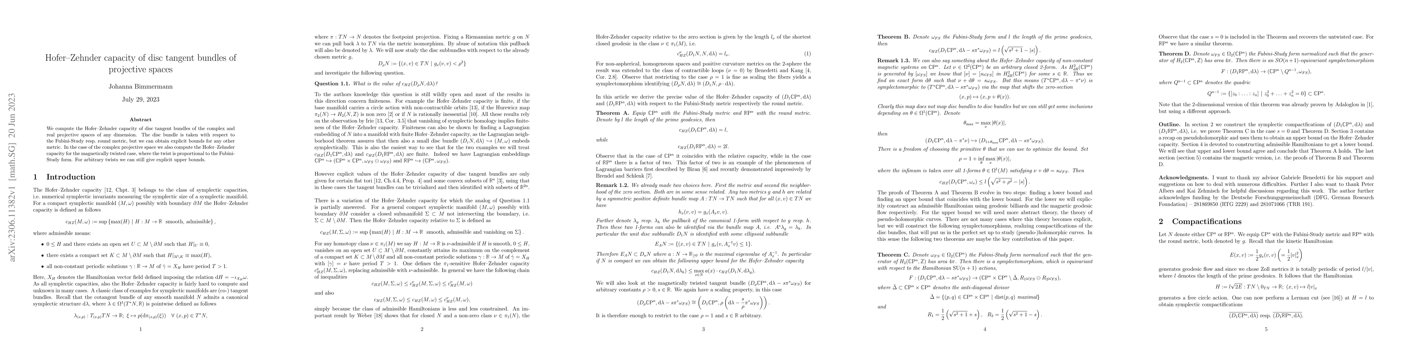 The paper computes the Hofer-Zehnder capacity for disc tangent bundles of complex and real projective spaces, providing explicit bounds for any metric and detailed results for both untwisted and magnetically twisted cases. It also gives explicit upper bounds for arbitrary twists.
