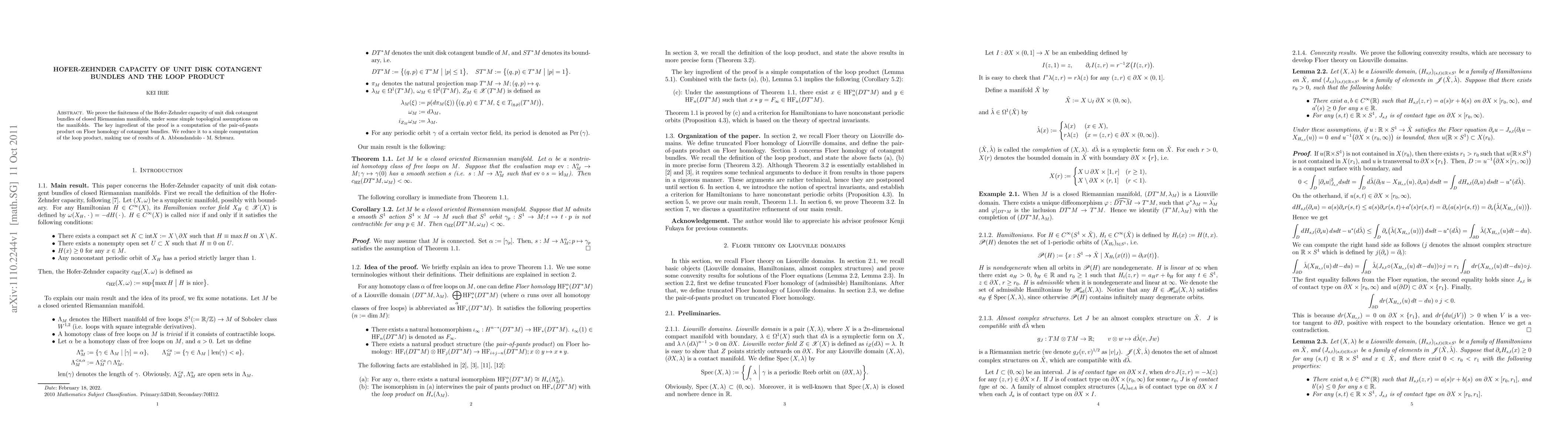 The paper proves the finiteness of the Hofer-Zehnder capacity for unit disk cotangent bundles of closed Riemannian manifolds, using the loop product computation on Floer homology, which relies on the pair-of-pants product. This reduction leverages prior work by Abbondandolo and Schwarz.