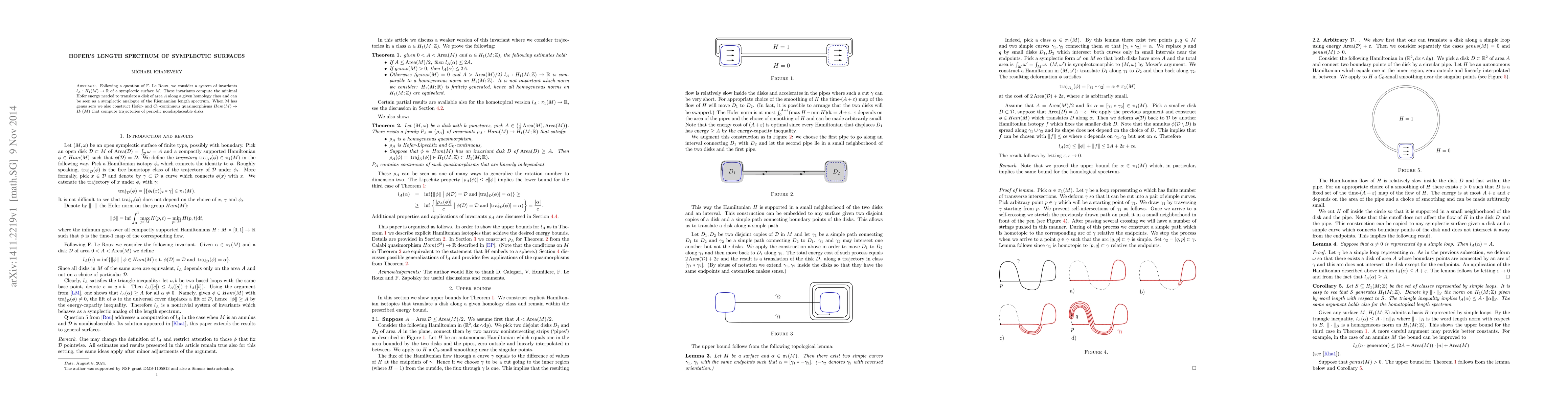 Following a question of F. Le Roux, we consider a system of invariants $l_A : H_1(M; \mathbb{Z})\to\mathbb{R}$ of a symplectic surface $M$. These invariants compute the minimal Hofer energy needed to translate a disk of area $A$ along a given homology class and can be seen as a symplectic analogue of the Riemannian length spectrum. When $M$ has genus zero we also construct Hofer- and $C_0$-continuous quasimorphisms $Ham(M) \to H_1(M;\mathbb{R})$ that compute trajectories of periodic non-displaceable disks.