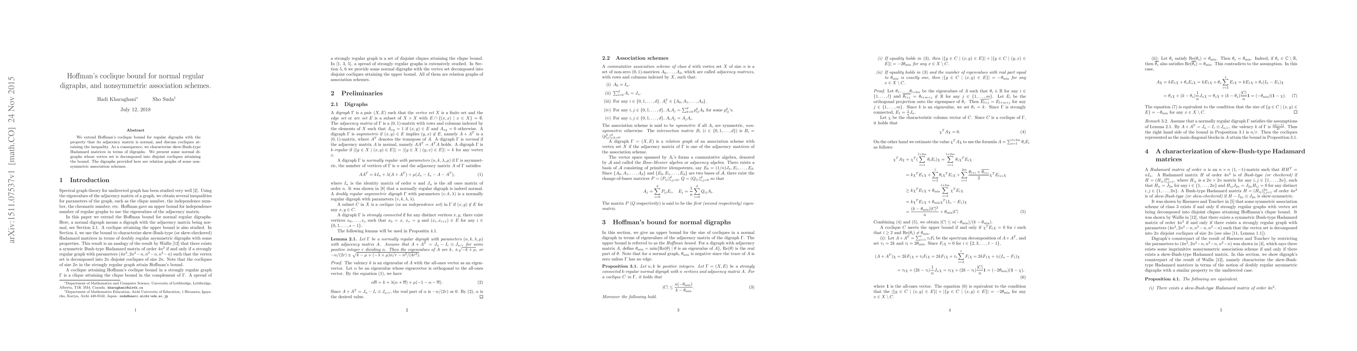 Researchers extend Hoffman's coclique bound to normal regular digraphs and nonsymmetric association schemes, providing new insights into characteristic properties of certain matrices.