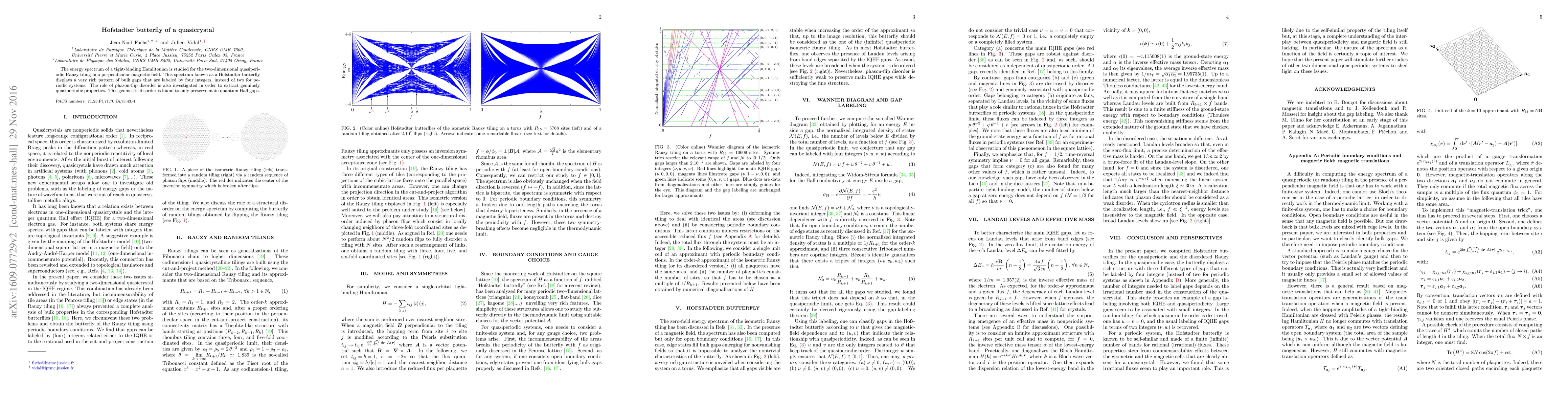The study investigates the energy spectrum of a two-dimensional quasiperiodic Rauzy tiling under a magnetic field, revealing a Hofstadter butterfly pattern with bulk gaps labeled by four integers. Phason-flip disorder is shown to preserve main quantum Hall gaps while affecting other quasiperiodic properties.