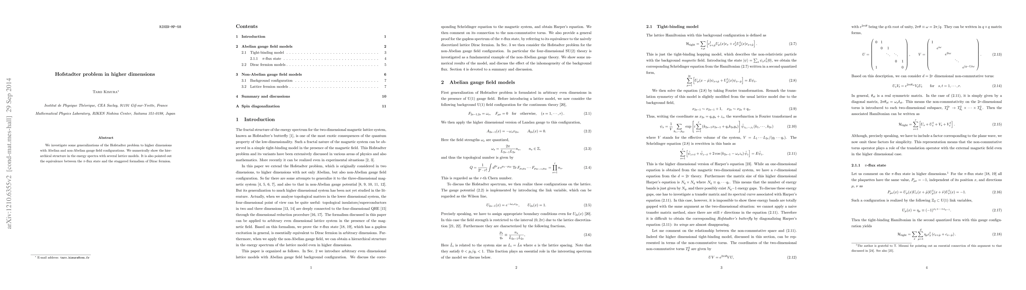 We investigate some generalizations of the Hofstadter problem to higher dimensions with Abelian and non-Abelian gauge field configurations. We numerically show the hierarchical structure in the energy spectra with several lattice models. It is also pointed out the equivalence betwee the \pi-flux state and the staggered formalism of Dirac fermion.