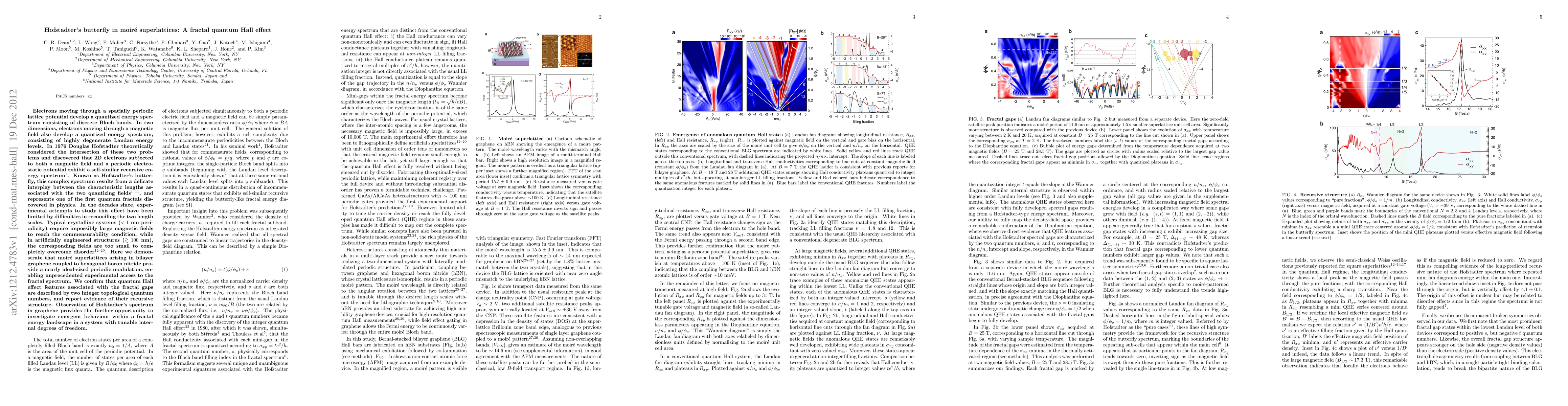 This paper demonstrates the observation of Hofstadter's butterfly in moiré superlattices formed by bilayer graphene coupled to hexagonal boron nitride, revealing a fractal quantum Hall effect. The study confirms the recursive structure of quantum Hall features and their topological quantum numbers, offering a tunable system to explore emergent behaviors in a fractal energy landscape.