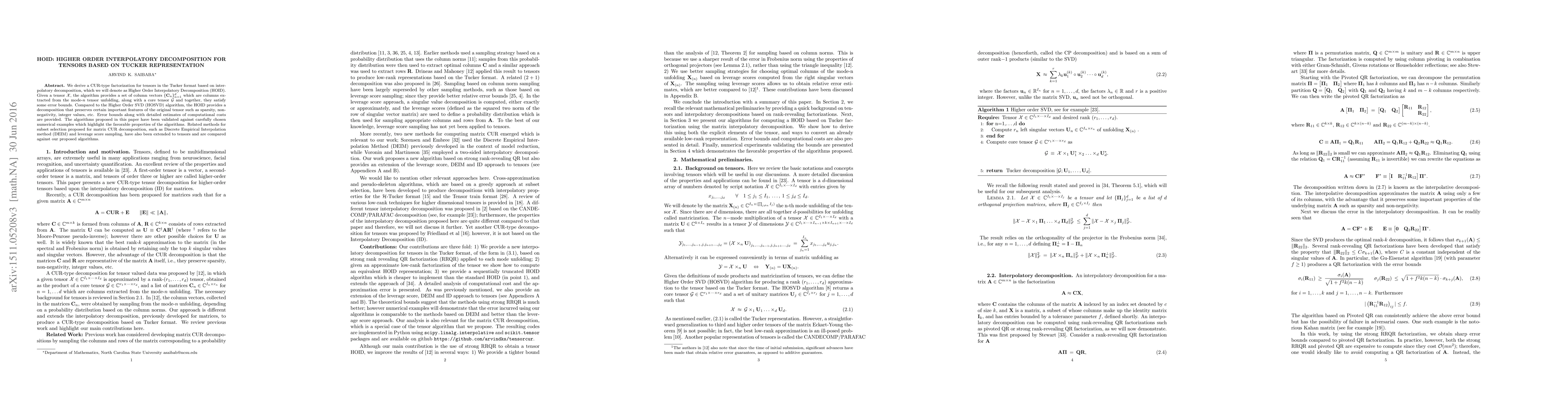 This paper introduces Higher Order Interpolatory Decomposition (HOID), a new tensor factorization method that preserves important features like sparsity and non-negativity, offering improved error bounds compared to existing methods.