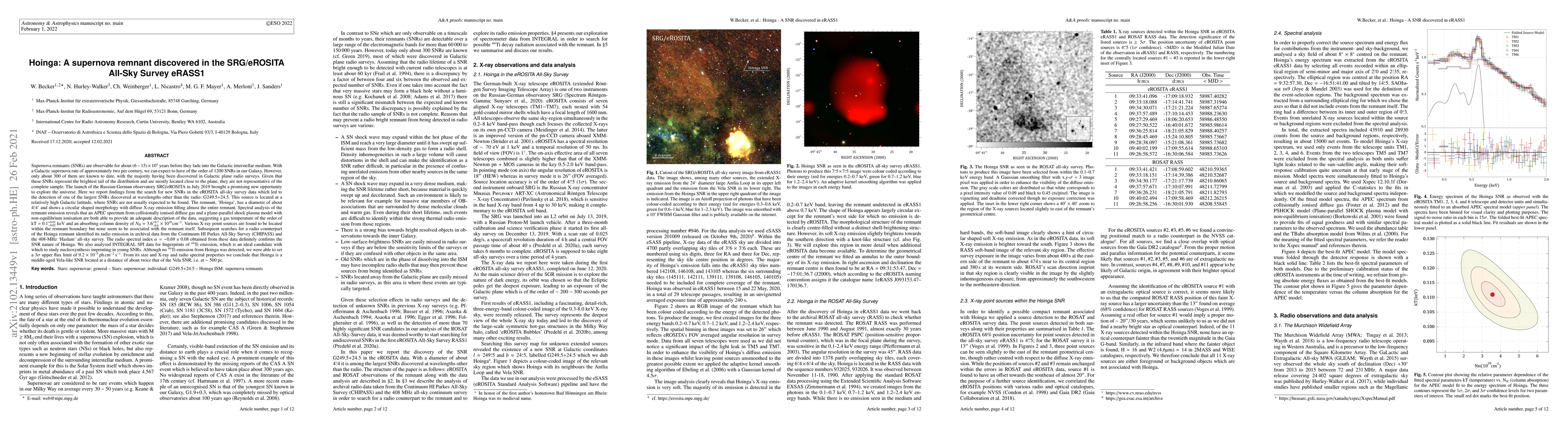 The paper reports the discovery of a new supernova remnant, 'Hoinga' (G249.5+24.5), detected in the eROSITA all-sky survey, characterized by a circular shape and diffuse X-ray emission. Hoinga is identified as a middle-aged Vela-like SNR located at ~500 pc, confirmed by its radio spectral index and non-equilibrium ionisation model.