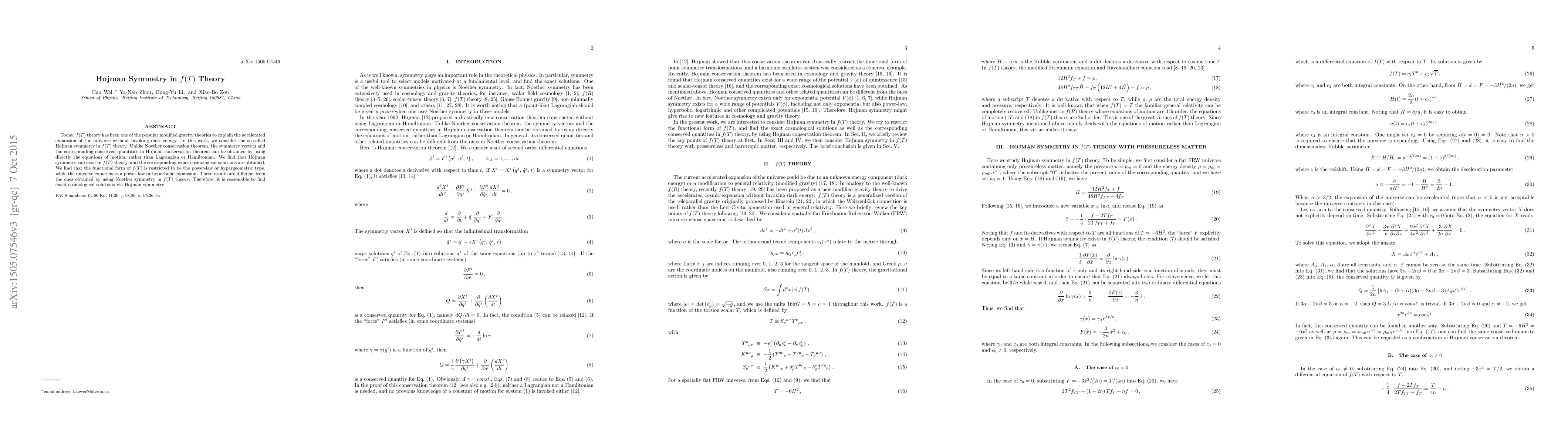 This paper explores Hojman symmetry in $f(T)$ theory, a modified gravity framework for explaining the accelerated expansion of the universe. Unlike Noether symmetry, Hojman symmetry allows for conserved quantities derived directly from equations of motion, leading to exact cosmological solutions with power-law or hyperbolic expansion, distinct from results obtained via Noether symmetry.