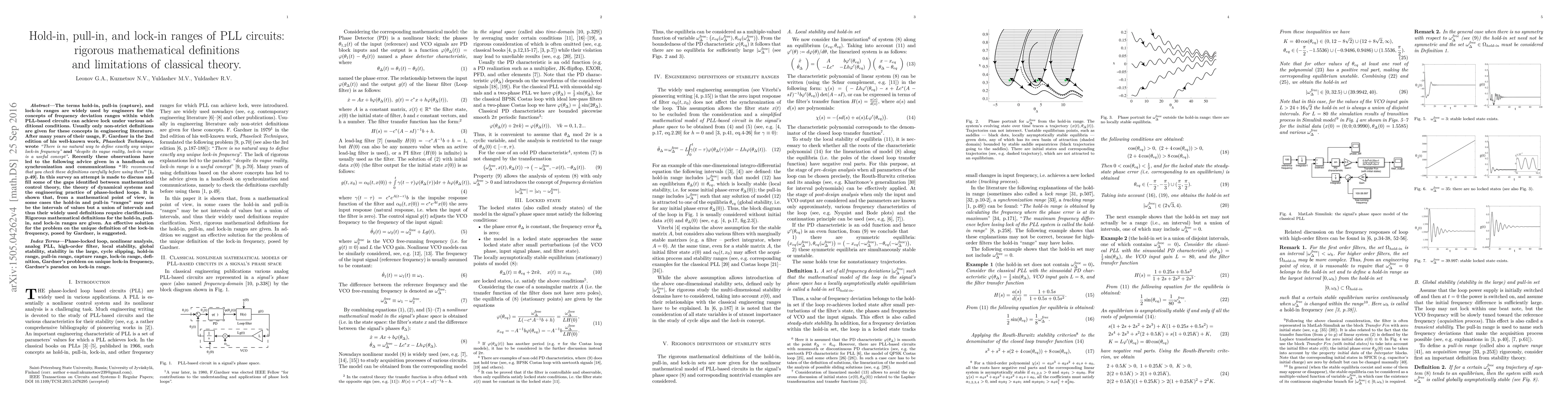 This paper provides rigorous mathematical definitions for the hold-in, pull-in, and lock-in ranges of PLL circuits, addressing the limitations of classical theory and clarifying the often ambiguous engineering definitions. It also proposes a solution to the problem of uniquely defining the lock-in frequency.