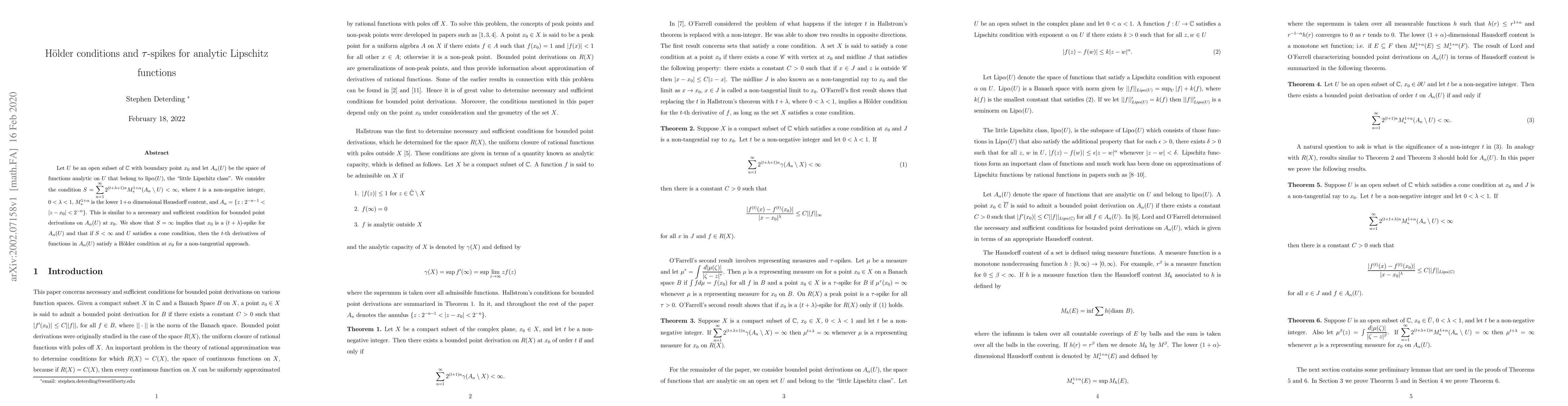 This research paper explores the connection between H"older conditions and $ au$-spikes for analytic functions in a given domain, providing a necessary and sufficient condition for bounded point derivations.