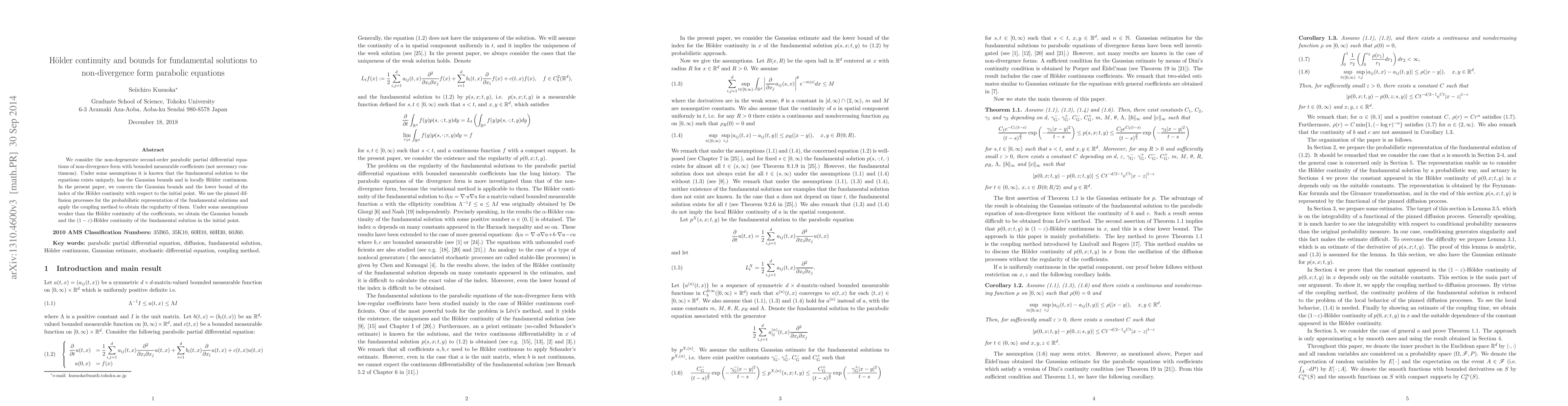 This paper investigates non-divergence form parabolic partial differential equations with bounded, measurable coefficients. It establishes Gaussian bounds and lower bounds for the Hölder continuity index of the fundamental solutions using pinned diffusion processes and the coupling method, achieving $(1-\varepsilon)$-Hölder continuity under weaker conditions than coefficient continuity.