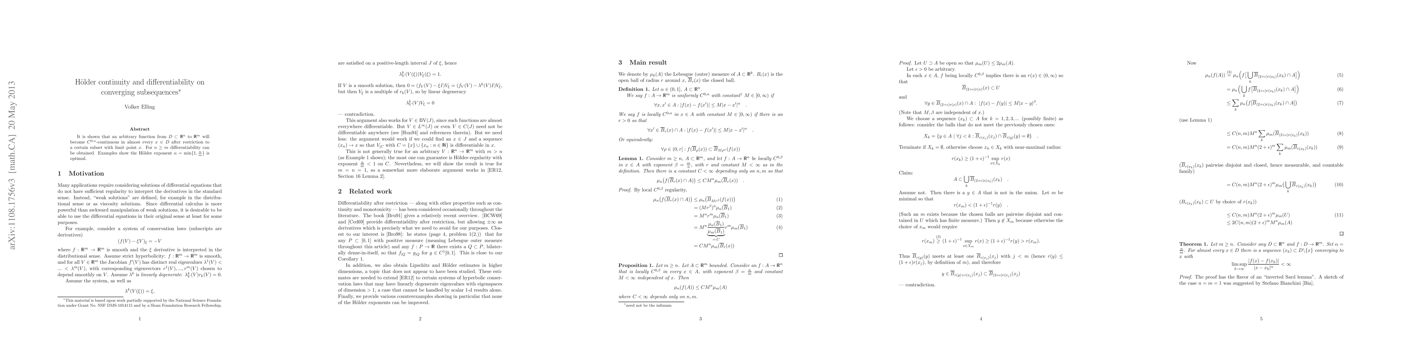 This paper proves that any function from a subset of R^n to R^m becomes Hölder continuous with exponent α = min{1, n/m} in almost every point of its domain when restricted to a suitable subsequence with a limit point. For dimensions n ≥ m, the function also achieves differentiability, with examples illustrating the optimality of the Hölder exponent.