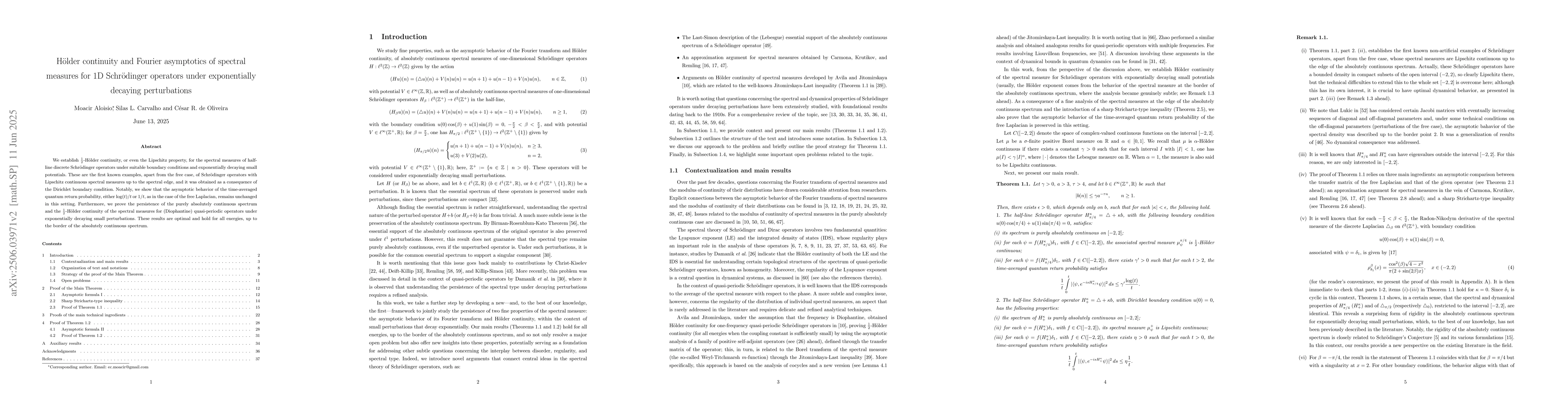 The research employs analysis of spectral measures for 1D Schrödinger operators under exponentially decaying perturbations, focusing on half-line discrete operators with suitable boundary conditions.