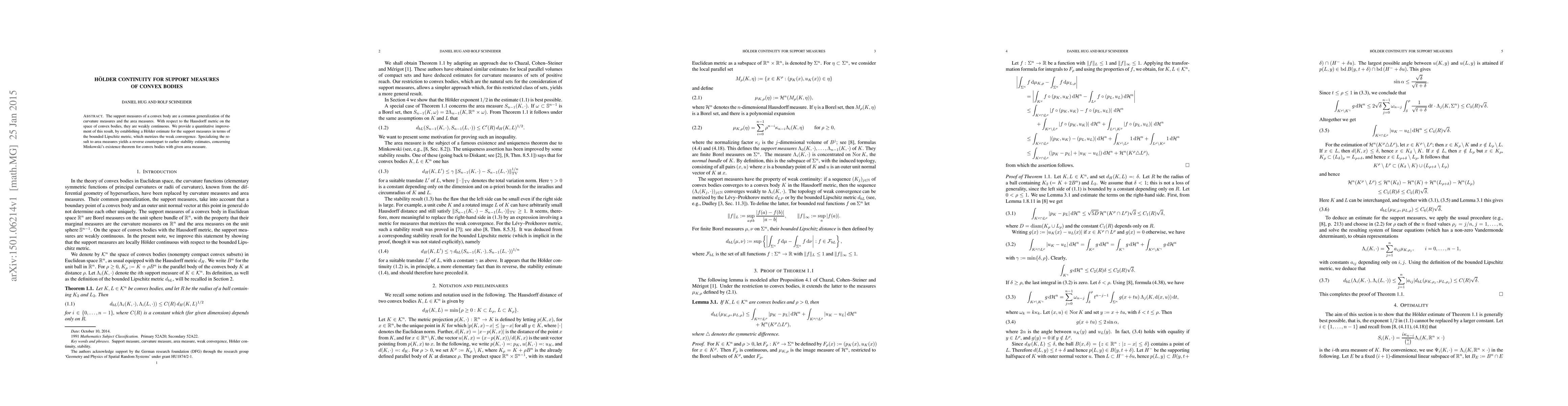 This paper establishes H\"older continuity for support measures of convex bodies, improving upon their weak continuity with respect to the Hausdorff metric. It provides a quantitative H\"older estimate for these measures in terms of the bounded Lipschitz metric, which metrizes weak convergence, and applies this to area measures to yield a reverse counterpart to earlier stability estimates related to Minkowski's existence theorem.