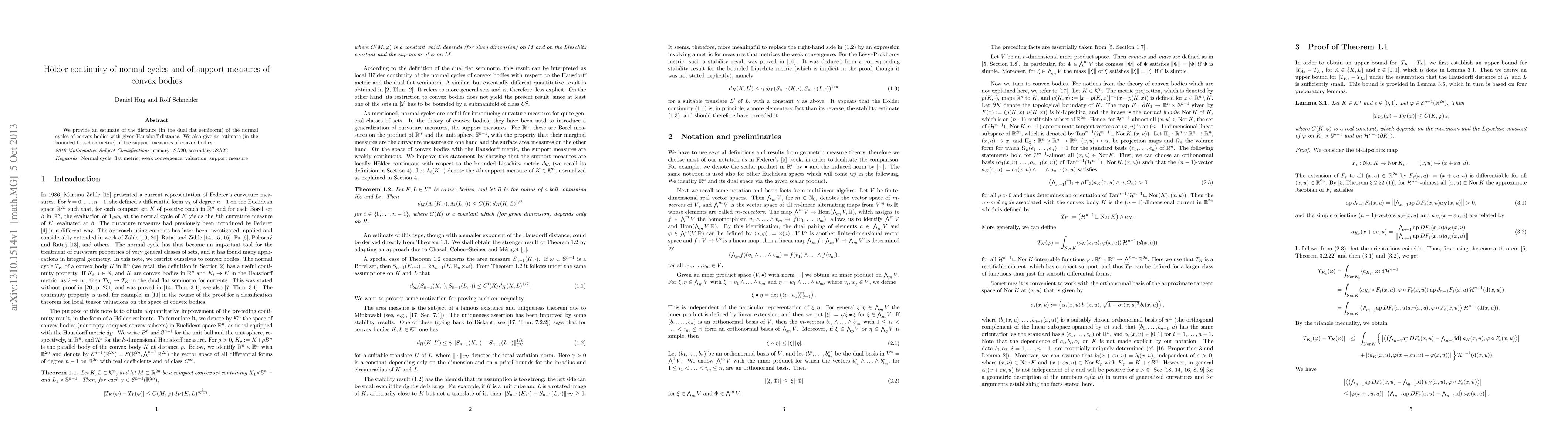 Summary: This paper estimates the dual flat seminorm distance between normal cycles of convex bodies with specified Hausdorff distance and provides a bounded Lipschitz metric estimate for the support measures of convex bodies.