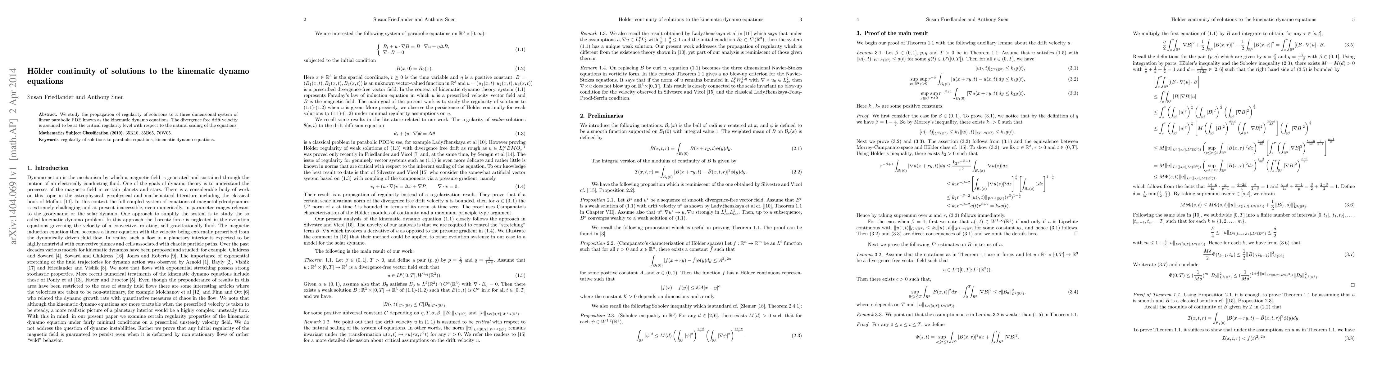 We study the propagation of regularity of solutions to a three dimensional system of linear parabolic PDE known as the kinematic dynamo equations. The divergence free drift velocity is assumed to be at the critical regularity level with respect to the natural scaling of the equations.