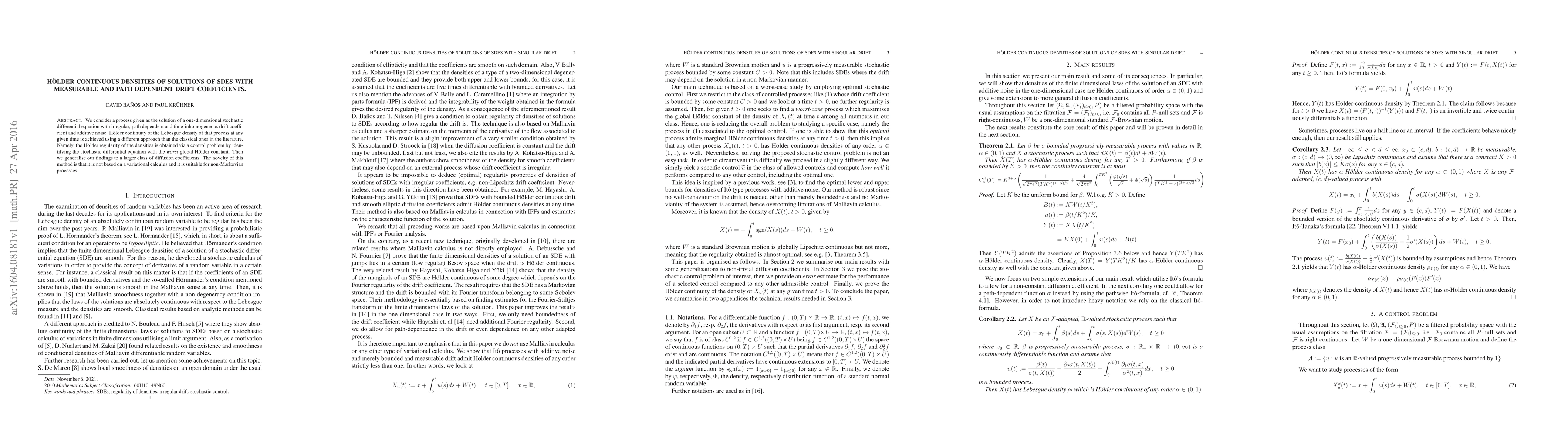 This paper investigates the H\"older continuity of densities for solutions of one-dimensional stochastic differential equations (SDEs) with irregular, path-dependent, and time-inhomogeneous drift coefficients. It introduces a novel method to achieve this continuity via a control problem, generalizing findings to a broader class of diffusion coefficients without relying on variational calculus, suitable for non-Markovian processes.