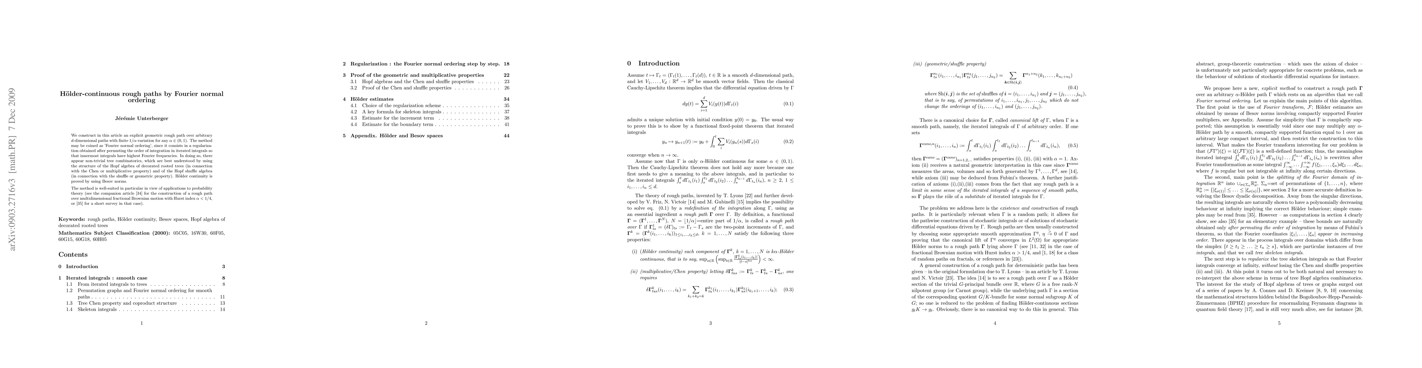 We construct in this article an explicit geometric rough path over arbitrary $d$-dimensional paths with finite $1/\alpha$-variation for any $\alpha\in(0,1)$. The method may be coined as 'Fourier normal ordering', since it consists in a regularization obtained after permuting the order of integration in iterated integrals so that innermost integrals have highest Fourier frequencies. In doing so, there appear non-trivial tree combinatorics, which are best understood by using the structure of the Hopf algebra of decorated rooted trees (in connection with the Chen or multiplicative property) and of the Hopf shuffle algebra (in connection with the shuffle or geometric property). H\"older continuity is proved by using Besov norms. The method is well-suited in particular in view of applications to probability theory (see the companion article \cite{Unt09} for the construction of a rough path over multidimensional fractional Brownian motion with Hurst index $\alpha<1/4$, or \cite{Unt09ter} for a short survey in that case).