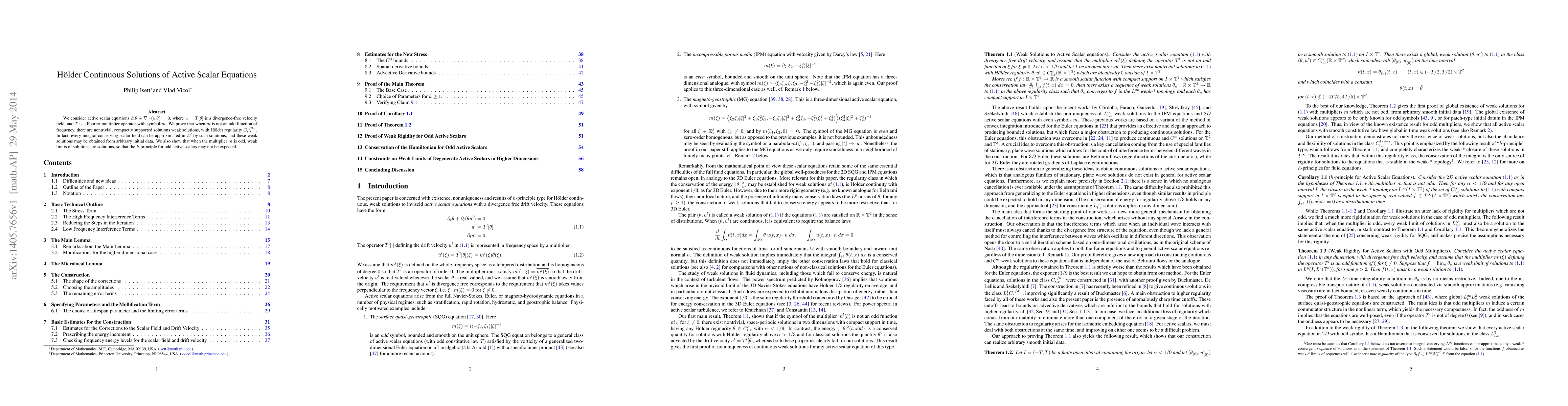 We consider active scalar equations $\partial_t \theta + \nabla \cdot (u \, \theta) = 0$, where $u = T[\theta]$ is a divergence-free velocity field, and $T$ is a Fourier multiplier operator with symbol $m$. We prove that when $m$ is not an odd function of frequency, there are nontrivial, compactly supported solutions weak solutions, with H\"older regularity $C^{1/9-}_{t,x}$. In fact, every integral conserving scalar field can be approximated in ${\cal D}'$ by such solutions, and these weak solutions may be obtained from arbitrary initial data. We also show that when the multiplier $m$ is odd, weak limits of solutions are solutions, so that the $h$-principle for odd active scalars may not be expected.