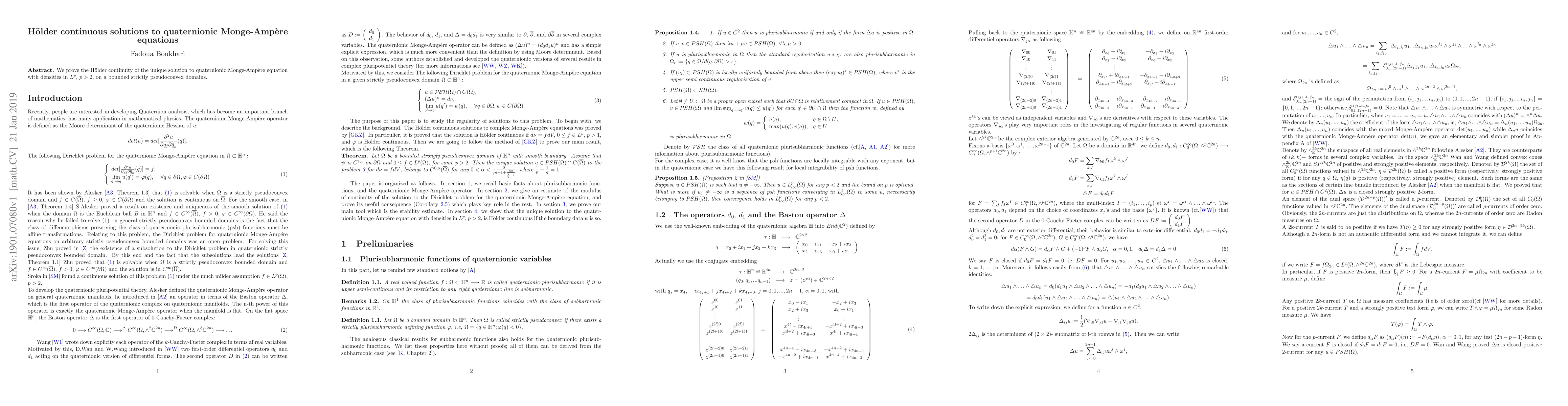 This paper proves the Hölder continuity of the unique solution to quaternionic Monge-Ampère equations with densities in $L^{p}$ for $p>2$ on bounded strictly pseudoconvex domains. The result establishes the regularity of solutions in a novel quaternionic setting.