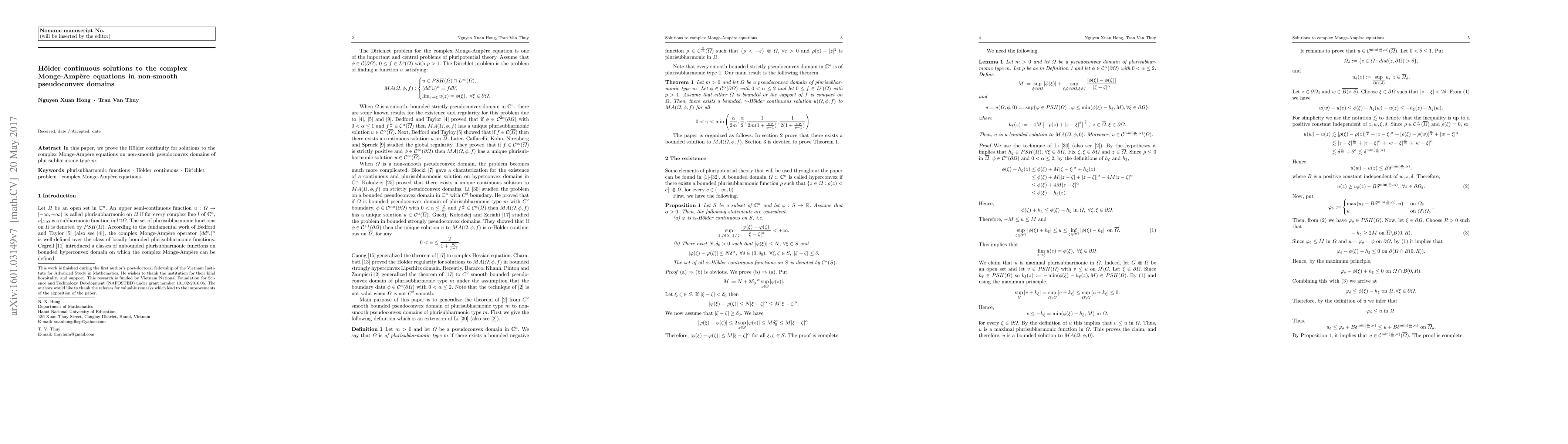 Summary: This paper establishes H\"older continuity for solutions to complex Monge-Ampère equations in non-smooth pseudoconvex domains of plurisubharmonic type ${m}$. The results extend the understanding of solution regularity in complex geometry.