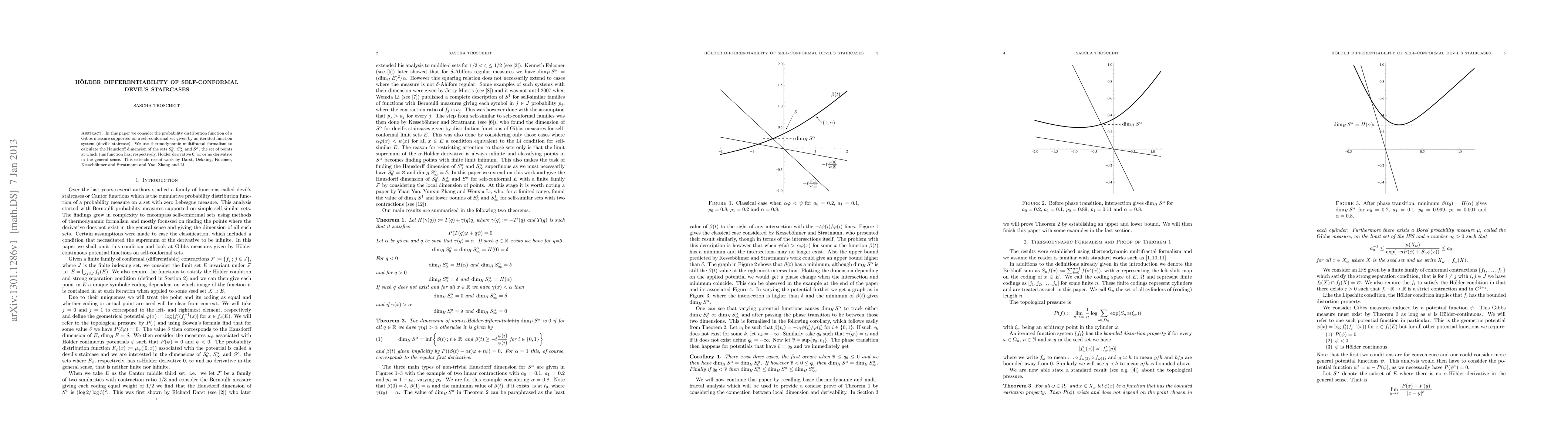 In this paper we consider the probability distribution function of a Gibbs measure supported on a self-conformal set given by an iterated function system (devil's staircase). We use thermodynamic multifractal formalism to calculate the Hausdorff dimension of the sets $S^{\alpha}_{0}$, $S^{\alpha}_{\infty}$ and $S^{\alpha}$, the set of points at which this function has, respectively, H\"older derivative 0, $\infty$ or no derivative in the general sense. This extends recent work by Darst, Dekking, Falconer, Kesseb\"ohmer and Stratmann and Yao, Zhang and Li.