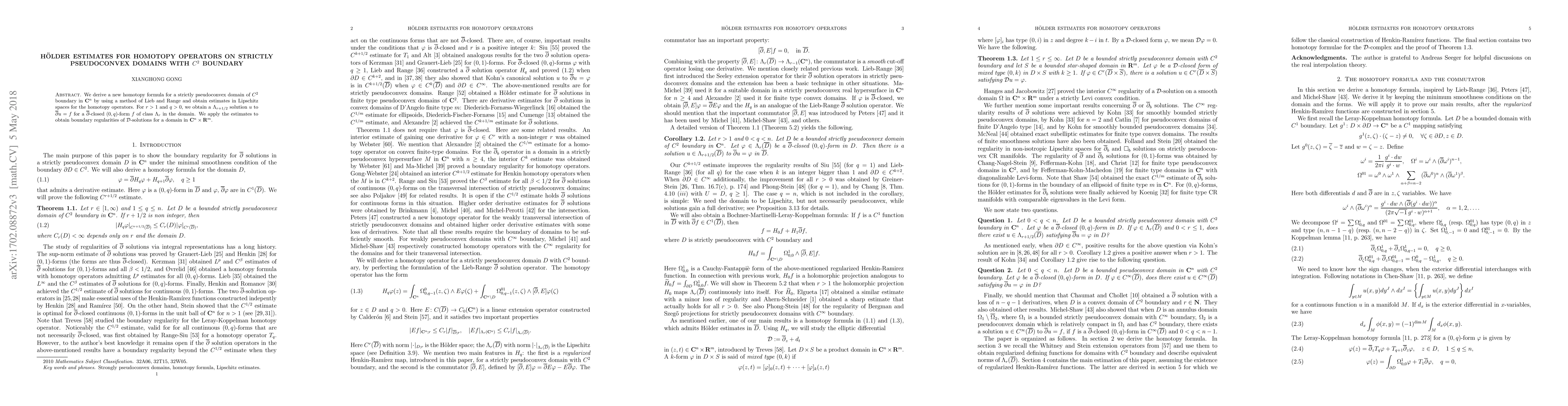 We derive a new homotopy formula for a strictly pseudoconvex domain of $C^2$ boundary in ${\mathbf C}^n$ by using a method of Lieb and Range and obtain estimates in Lipschitz spaces for the homotopy operators. For $r>1$ and $q>0$, we obtain a $\Lambda_{r+{1}/{2}}$ solution $u$ to $\overline\partial u=f$ for $\overline\partial$-closed $(0,q)$ forms $f$ of class $\Lambda_{r}$ on the domain. We apply the estimates to obtain boundary regularities of $\mathcal D$-solutions for a domain in the Levi-flat Euclidean space.
