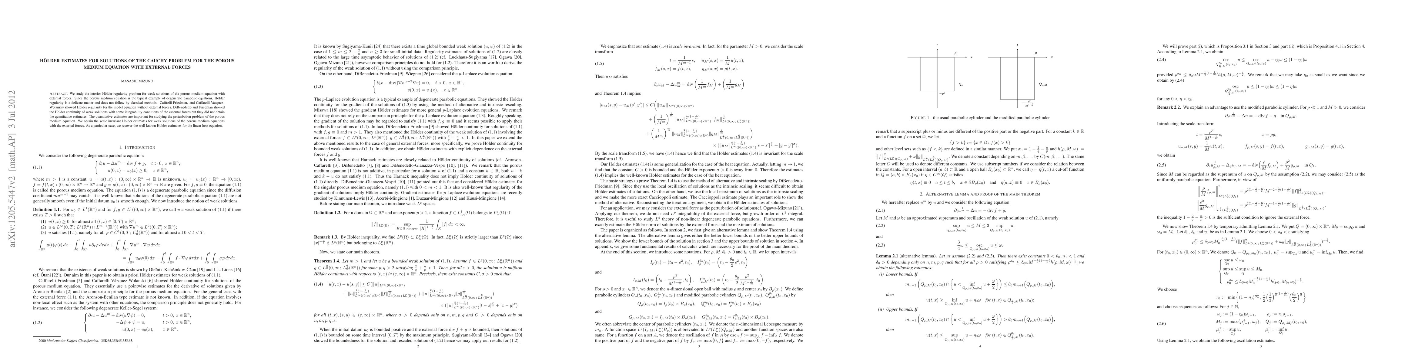 We study the interior H\"older regularity problem for weak solutions of the porous medium equation with external forces. Since the porous medium equation is the typical example of degenerate parabolic equations, H\"older regularity is a delicate matter and does not follow by classical methods. Caffrelli-Friedman, and Caffarelli-Vazquez-Wolansky showed H\"older regularity for the model equation without external forces. DiBenedetto and Friedman showed the H\"older continuity of weak solutions with some integrability conditions of the external forces but they did not obtain the quantitative estimates. The quantitative estimates are important for studying the perturbation problem of the porous medium equation. We obtain the scale invariant H\"older estimates for weak solutions of the porous medium equations with the external forces. As a particular case, we recover the well known H\"older estimates for the linear heat equation.
